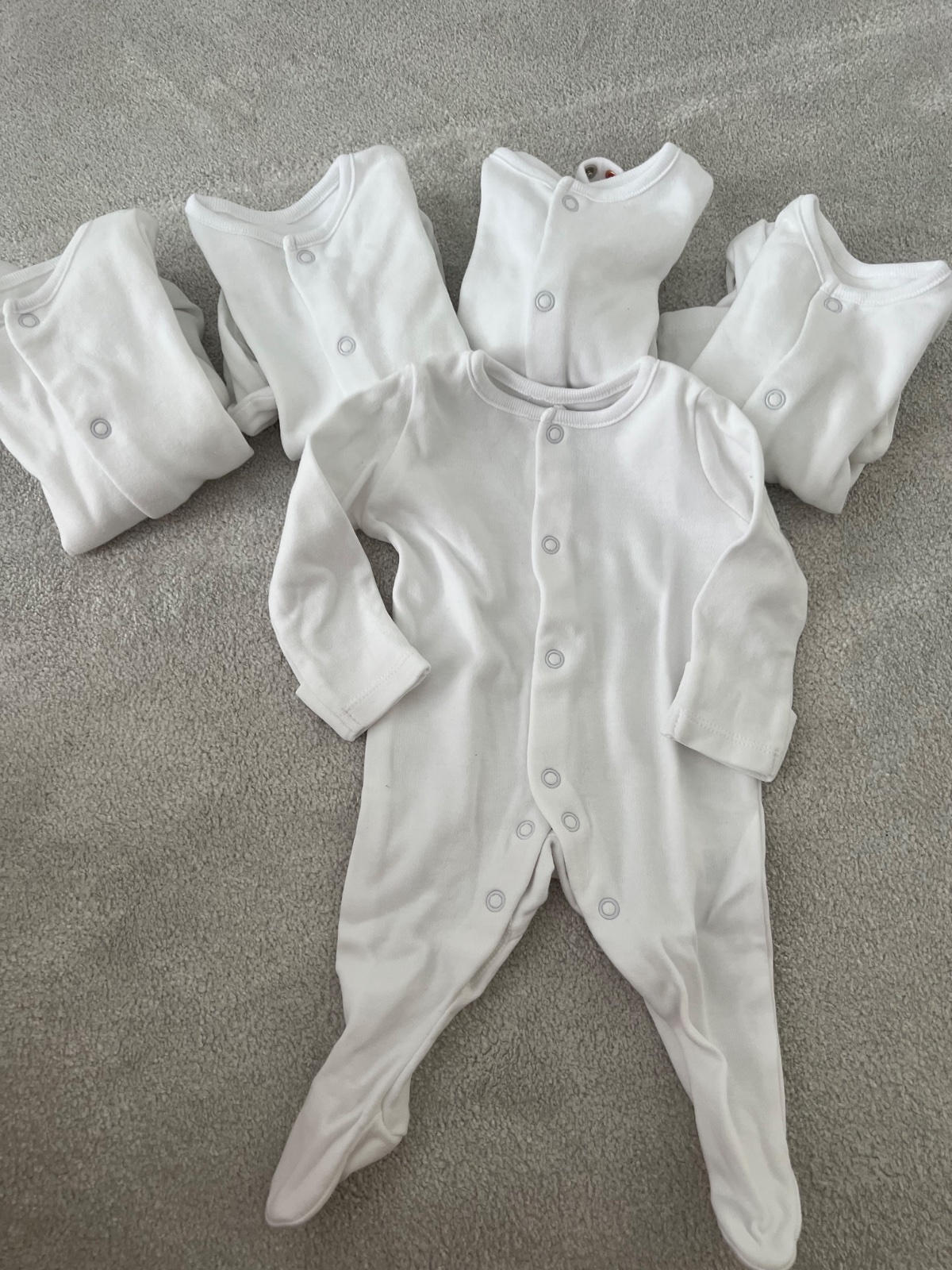 5ks rovnaké biele bez vzoru, majú zahýnacie rukávy - namiesto rukavičiek.