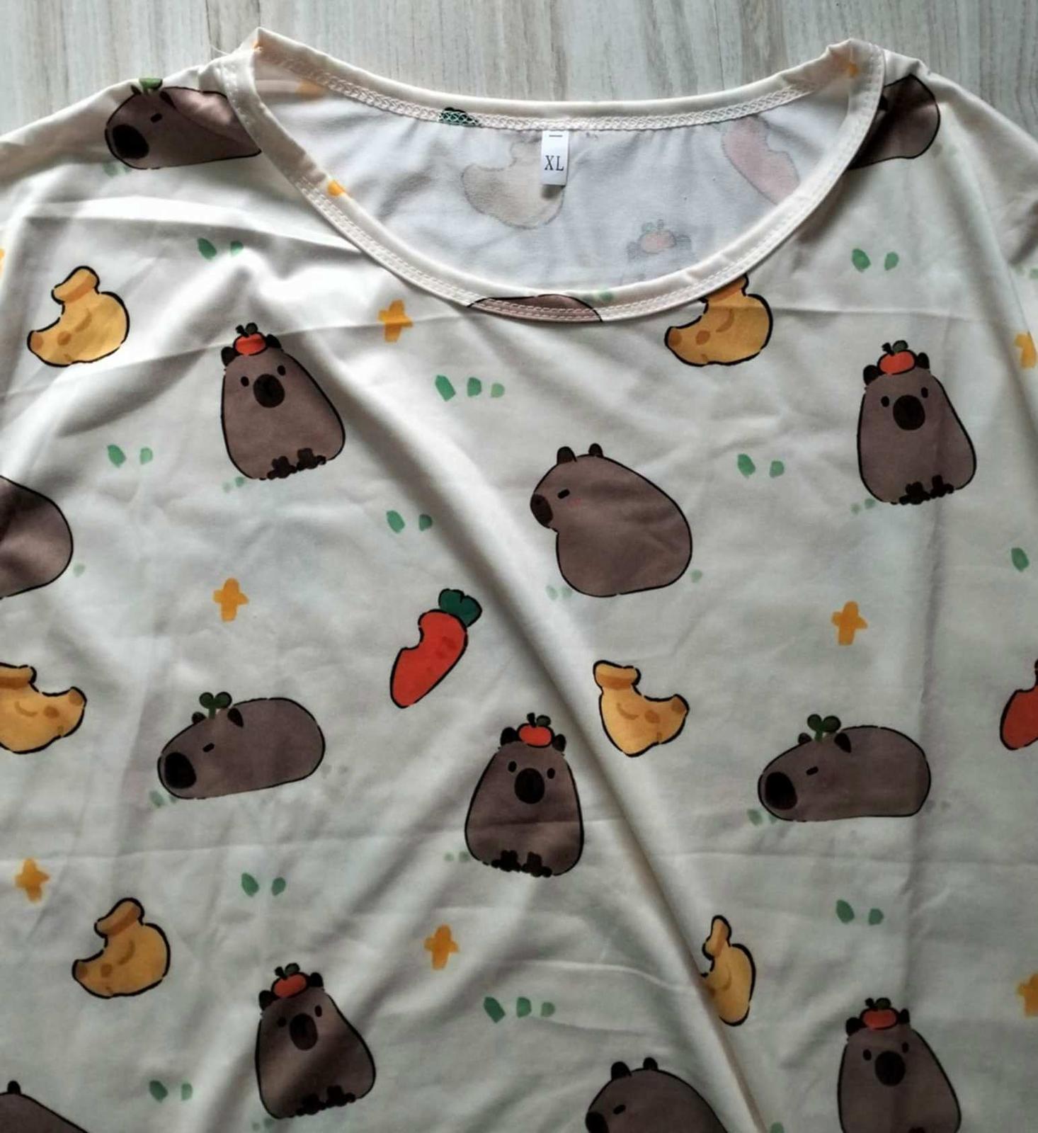 Farba je podkladová taká svetlo žltá (maslová) s obrázkami obľúbenej Kapybary.
