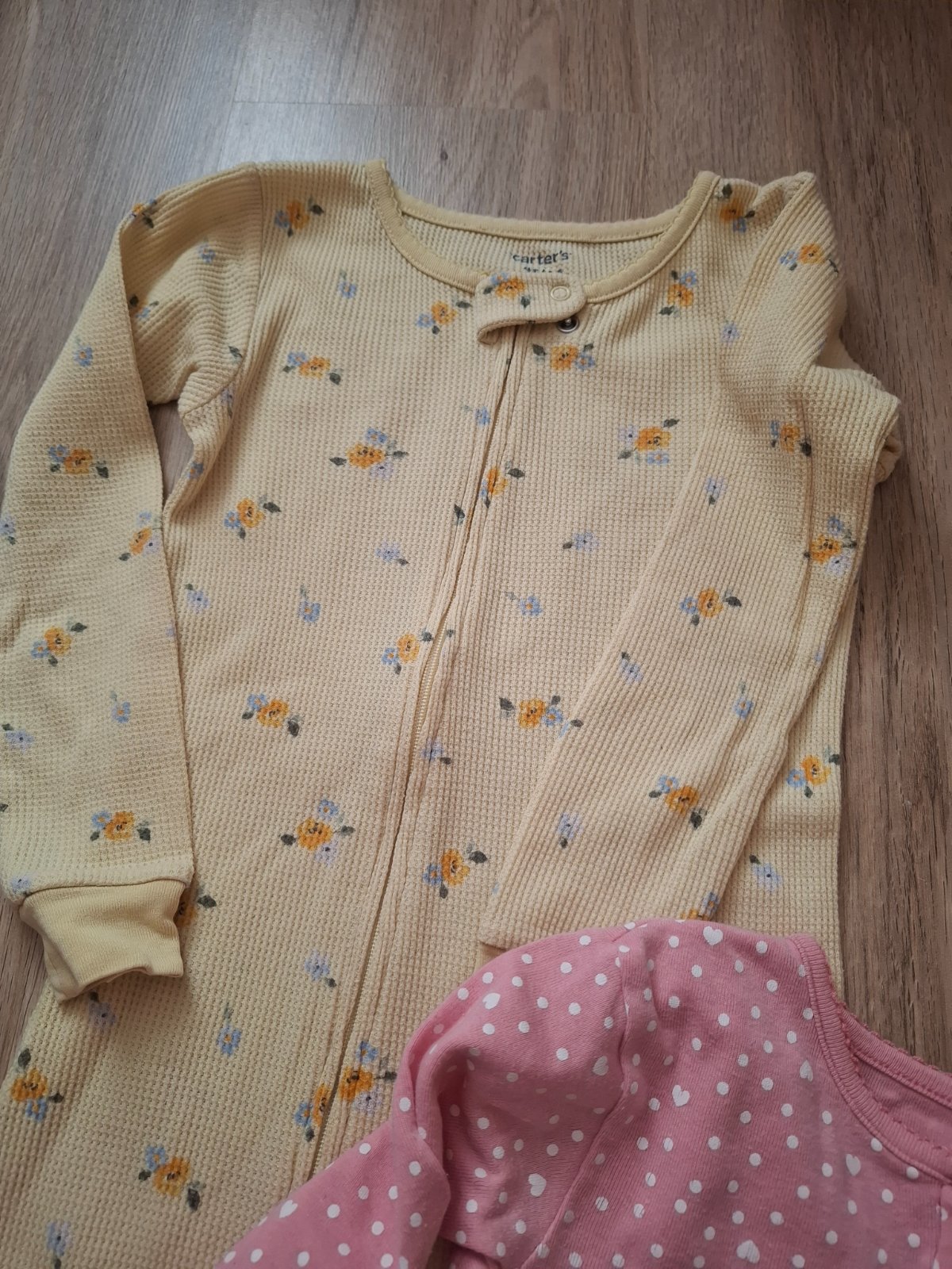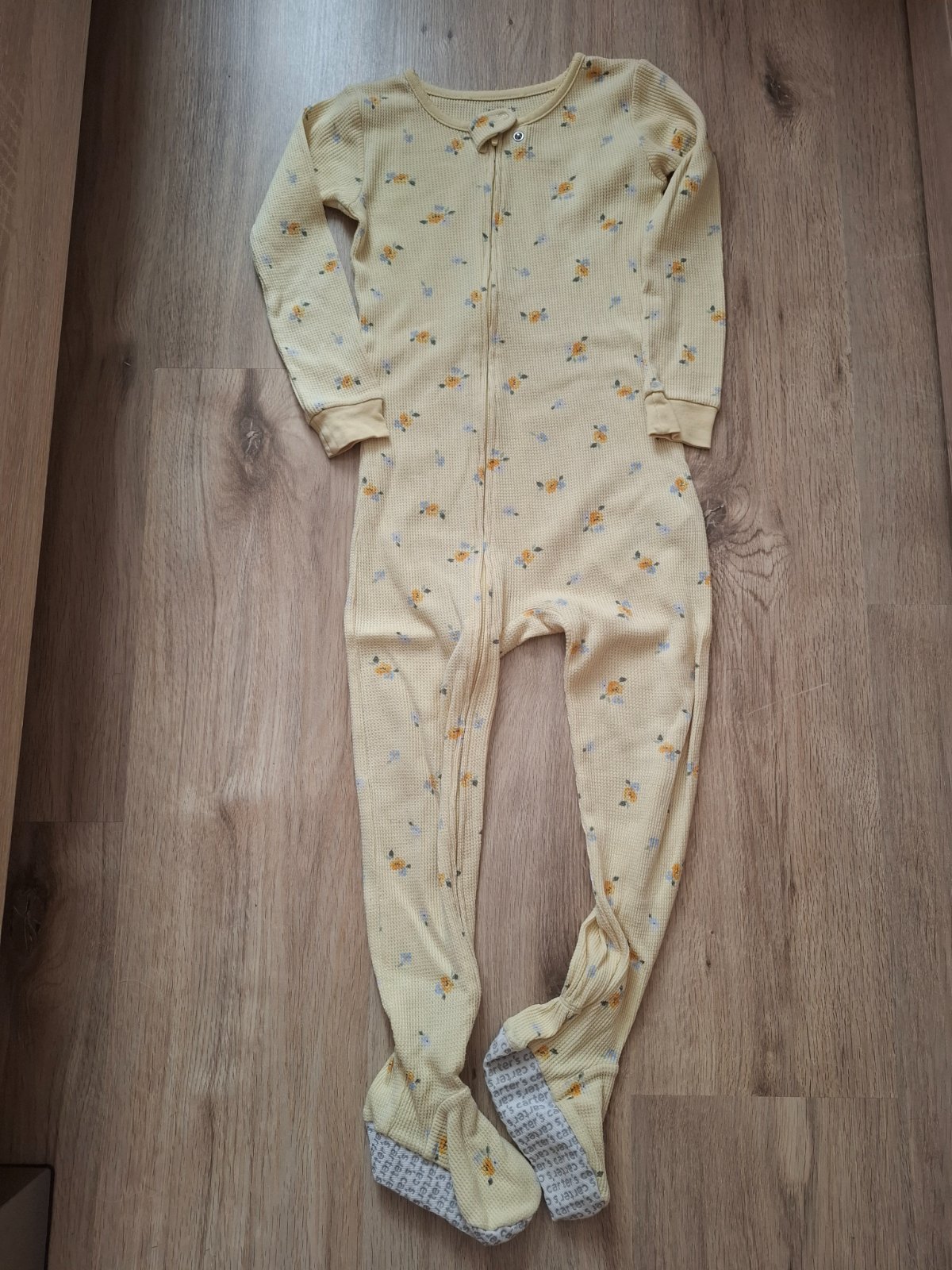 Pekný nosený stav. Pribalím k nemu ružové. Tam vidno viac pranie a mini dierka vzadu, ale stále pekné. Za mňa najlepšie overaly na spanie. Vek 4T