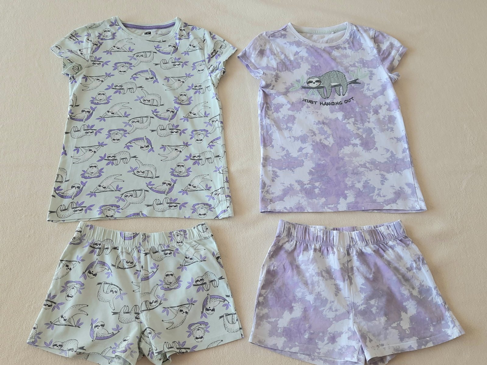 Párkrát oblečené pyžamká, ako nové. Veľkosť 128_134. Cena za obidve spolu 6 €.