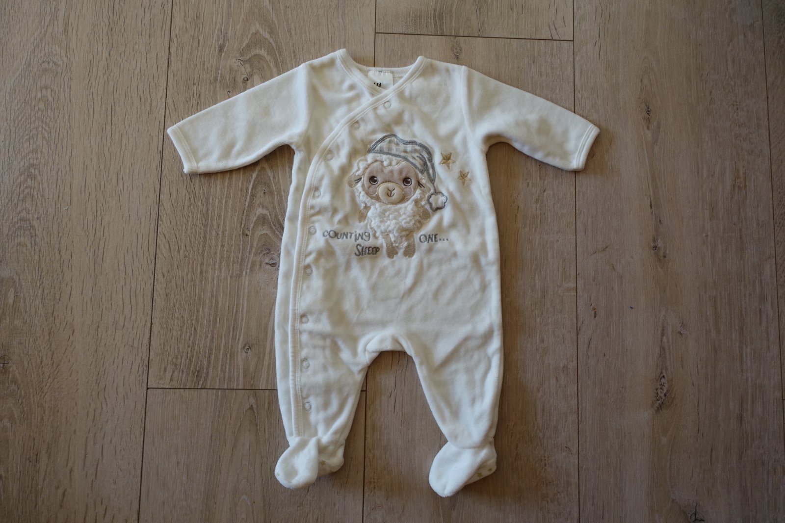 Predám krásny teplý velúrový overalík s ovečkou. Nemá žiadne poškodenie. Mali sme ho 1x, kúpený neskoro, už nám bol malý, ale je top stav. Ovečka je chlpatá, jemnulinká, krásna. Dĺžka od pliecka po pätu je 48cm a od pliecka po rozkrok je 36 cm.