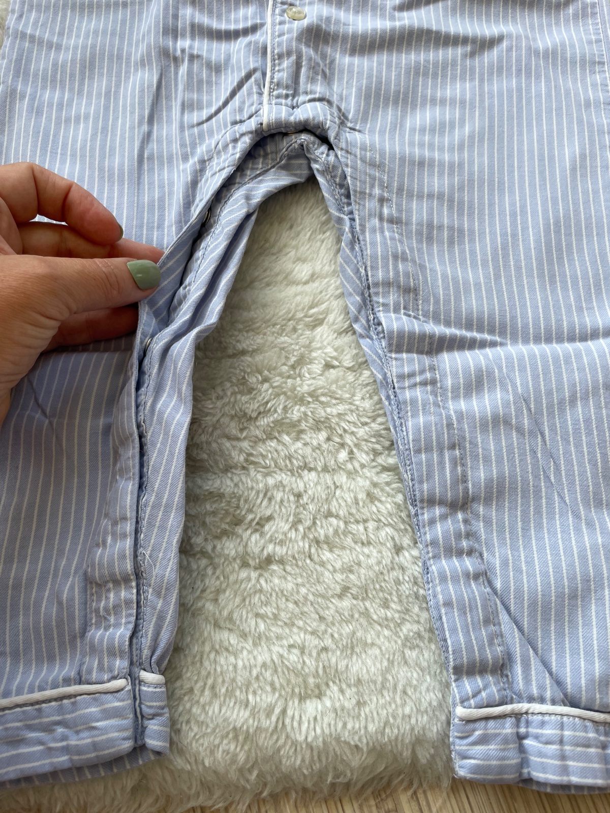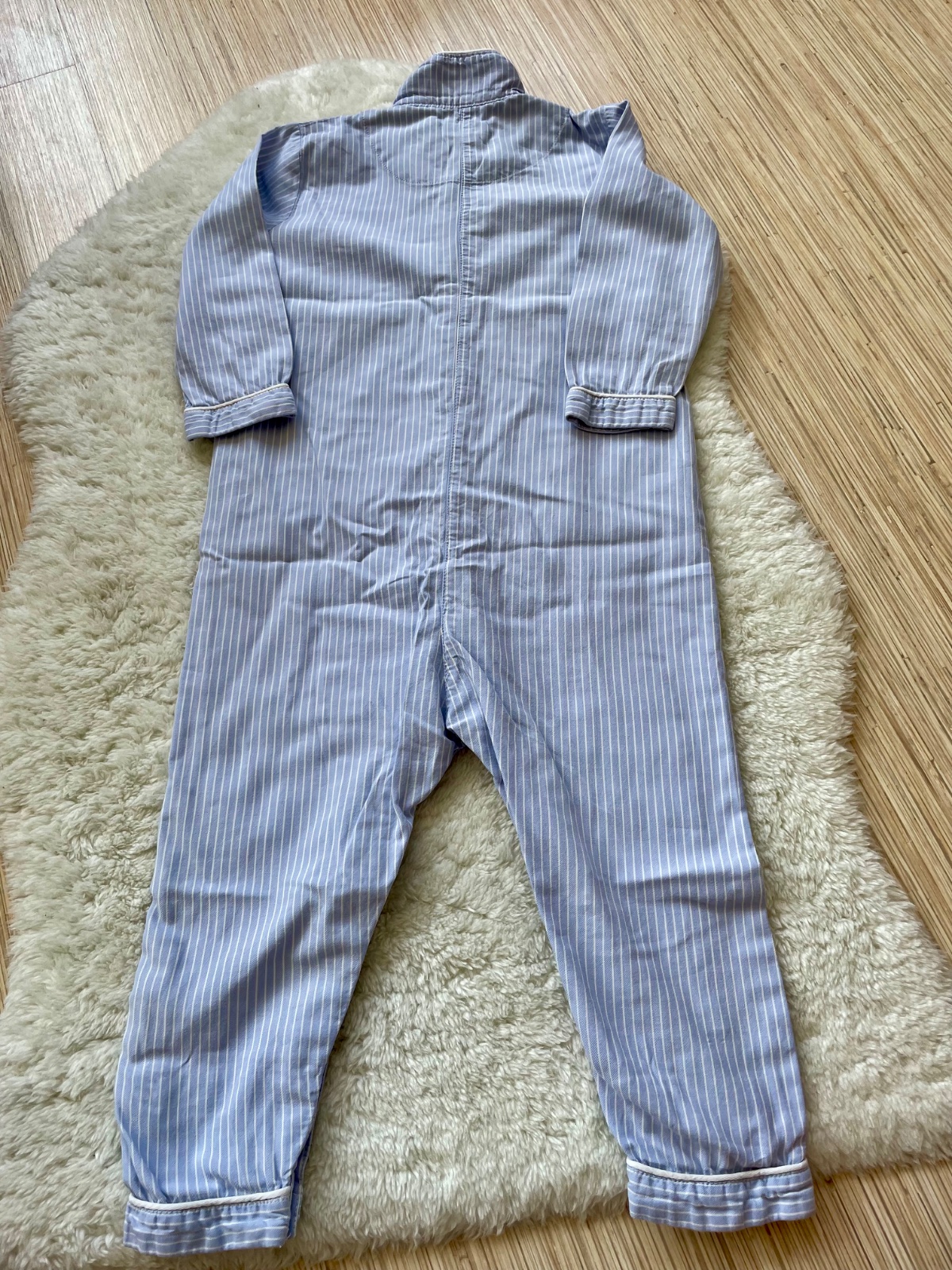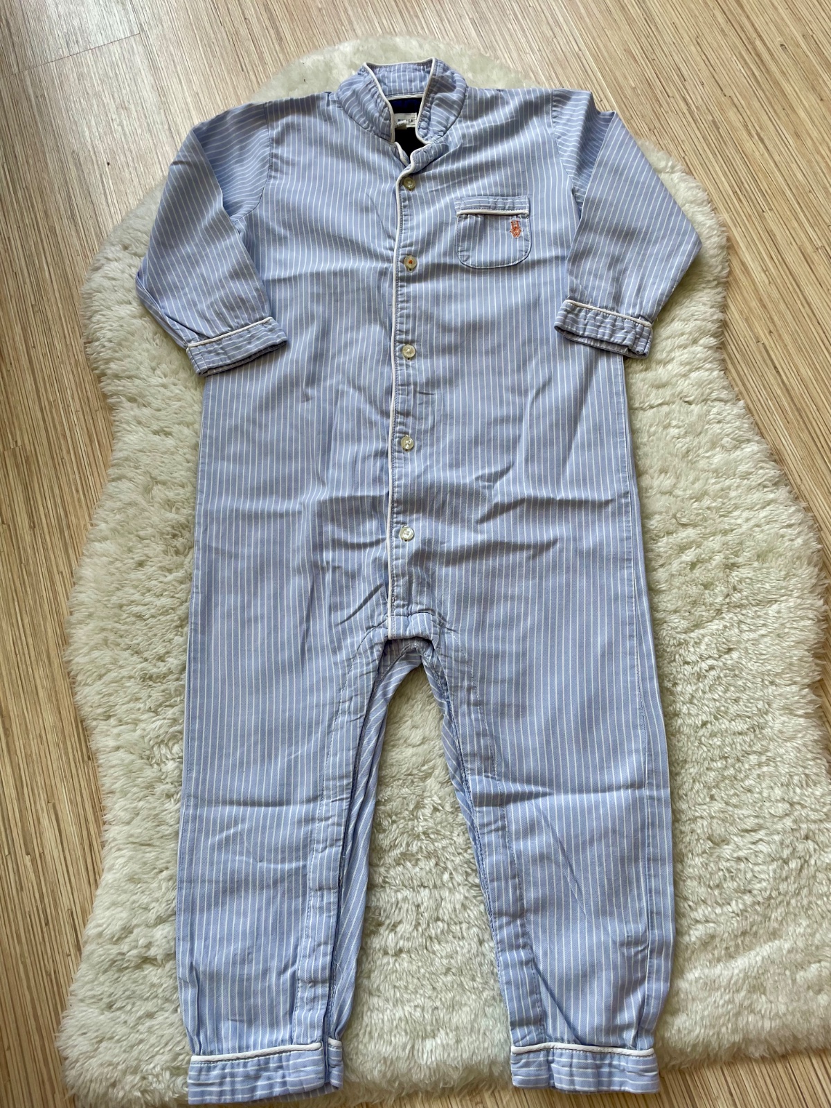 Kvalitne bavlnene pyzamo Lindex so zapinanim na gombiky a medzi nozickami na cvocky, s prednym vreckom, neznicitelne, neposkodene, vydrzalo nam ako dvojcislo 92-98. Nosili by sme ho dodnes :)