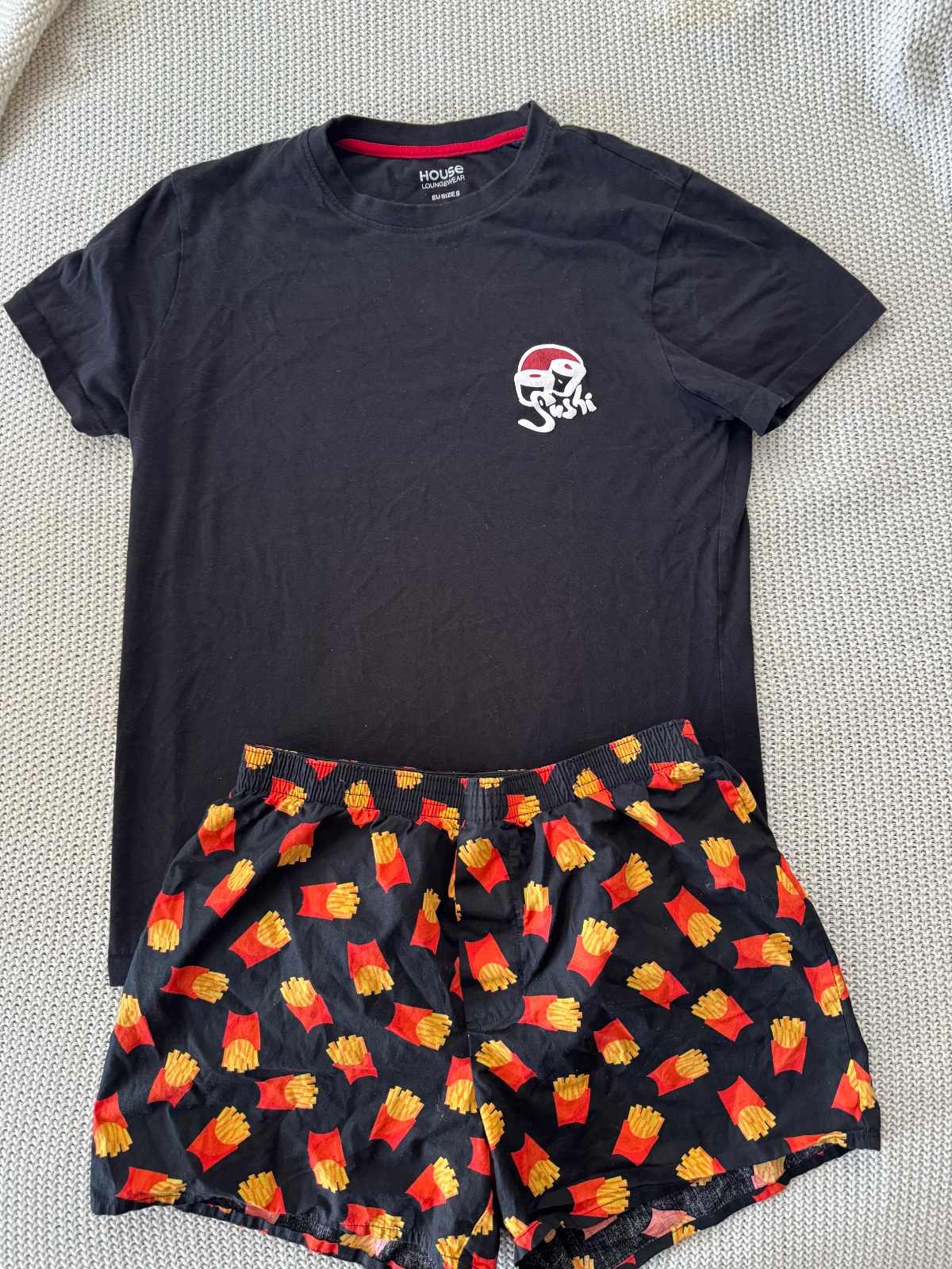 Predám pekné pyžamko zn.House s motívom sushi.Rozmery:tričko 66cm dĺžka 66cm, 49 cm šírka, pás 35cm.
