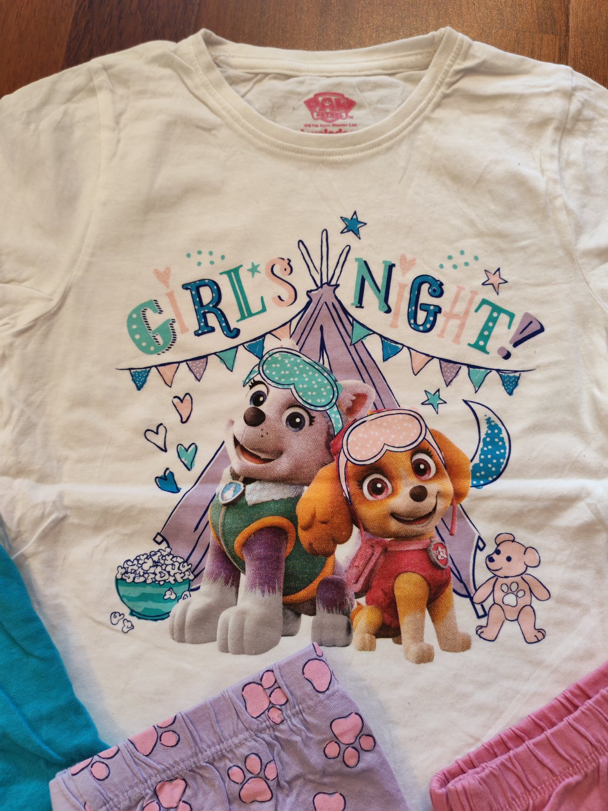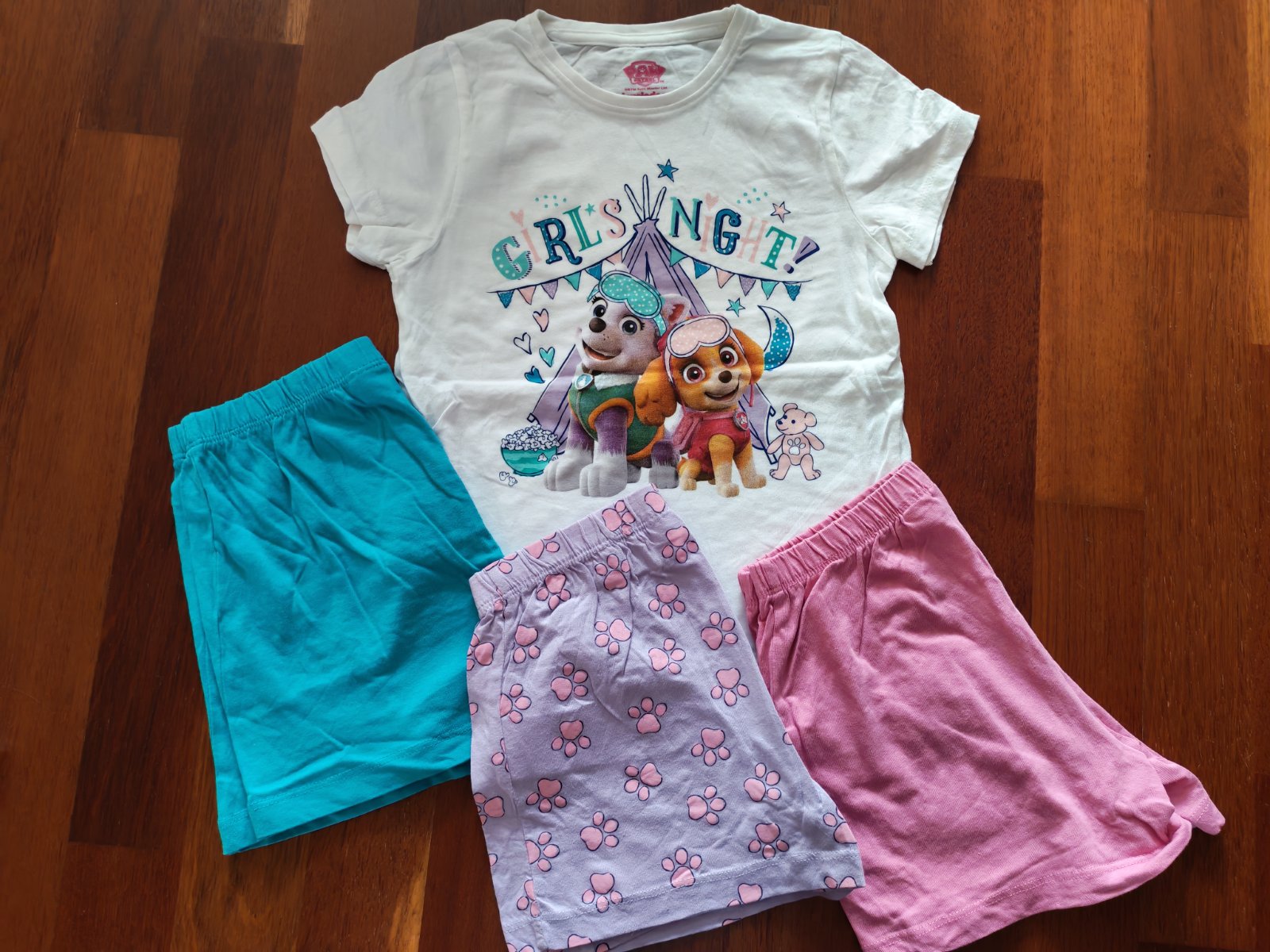 Pyžamo Labková patrola, mozno raz oblečené, top stav, pridám aj dvoje pyžamové kraťasy navyše, veľkosť 110/116.
