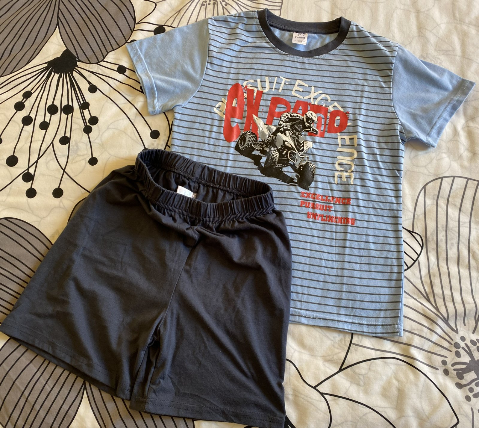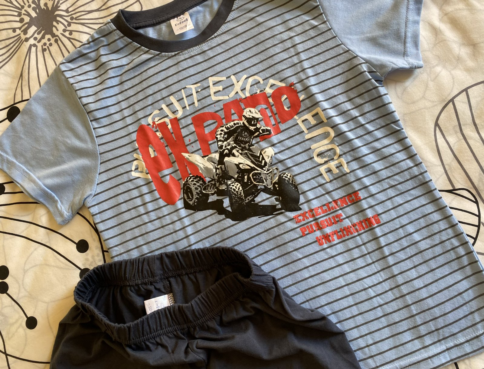 Nenosené, iba opraté, bavlnené letné pyžamo s potlačou n-feel v. 152/158.