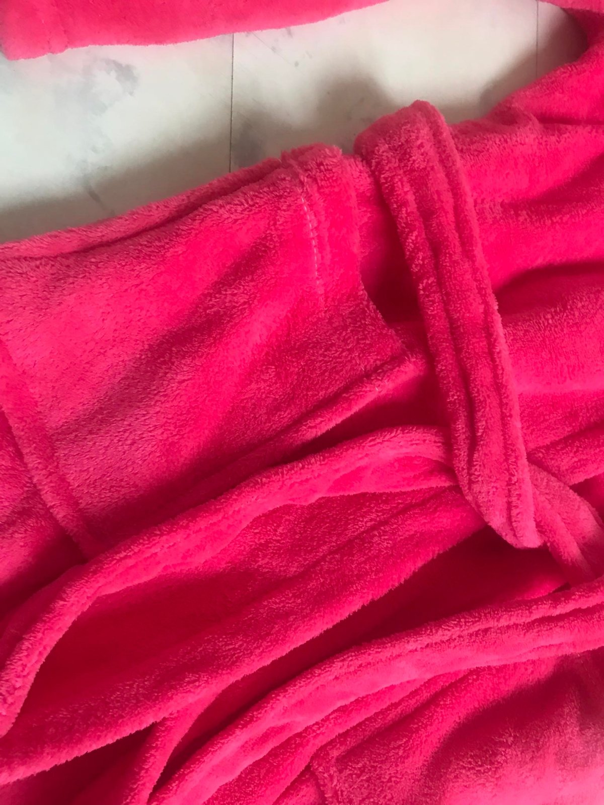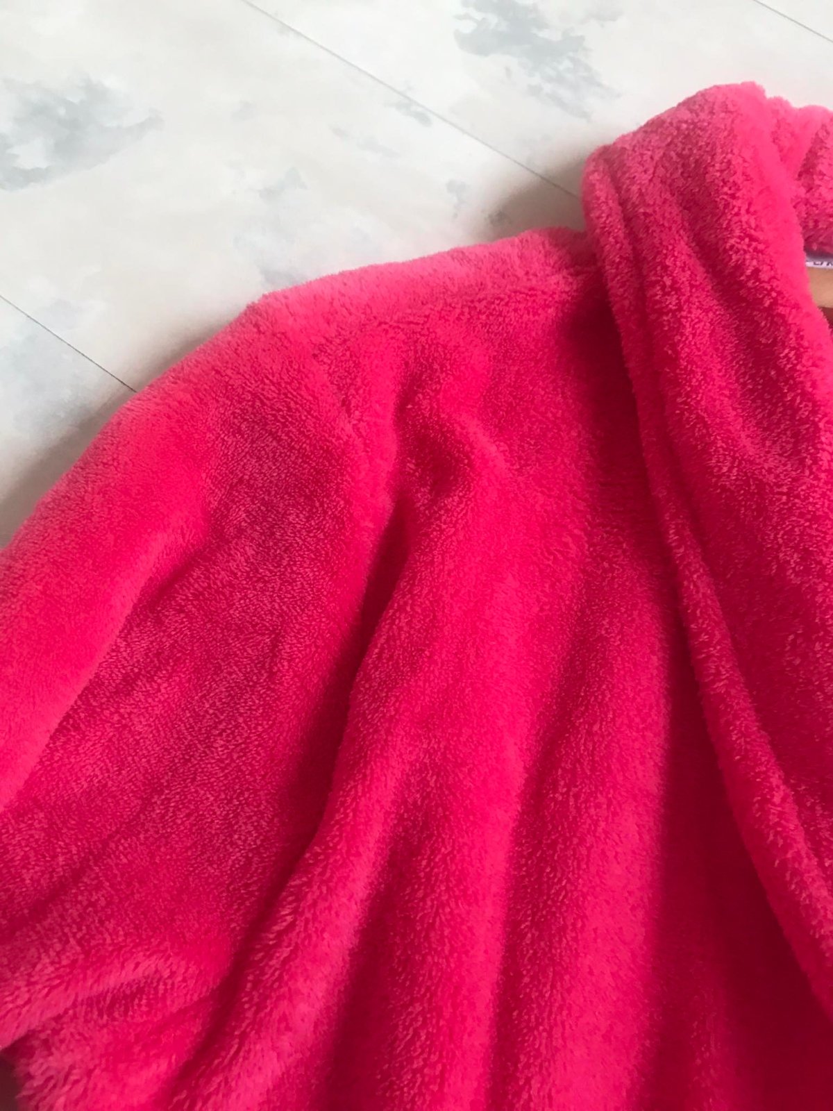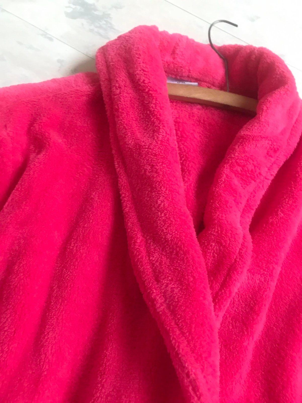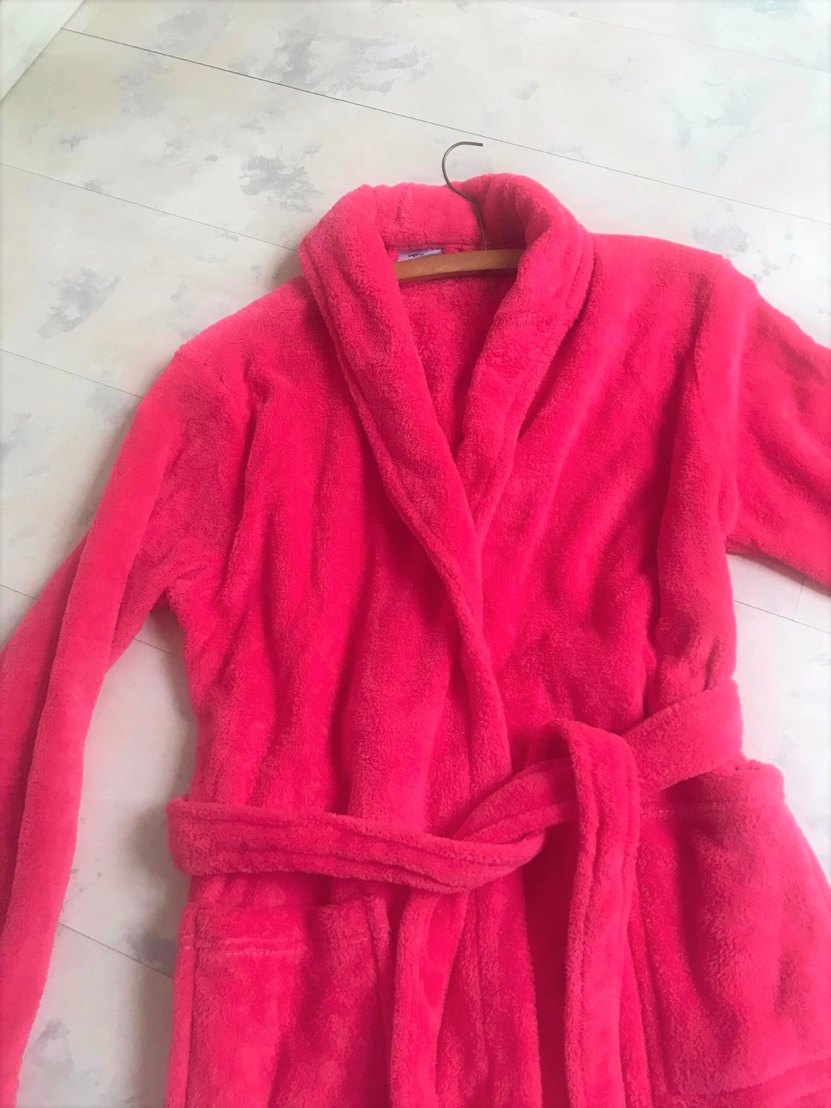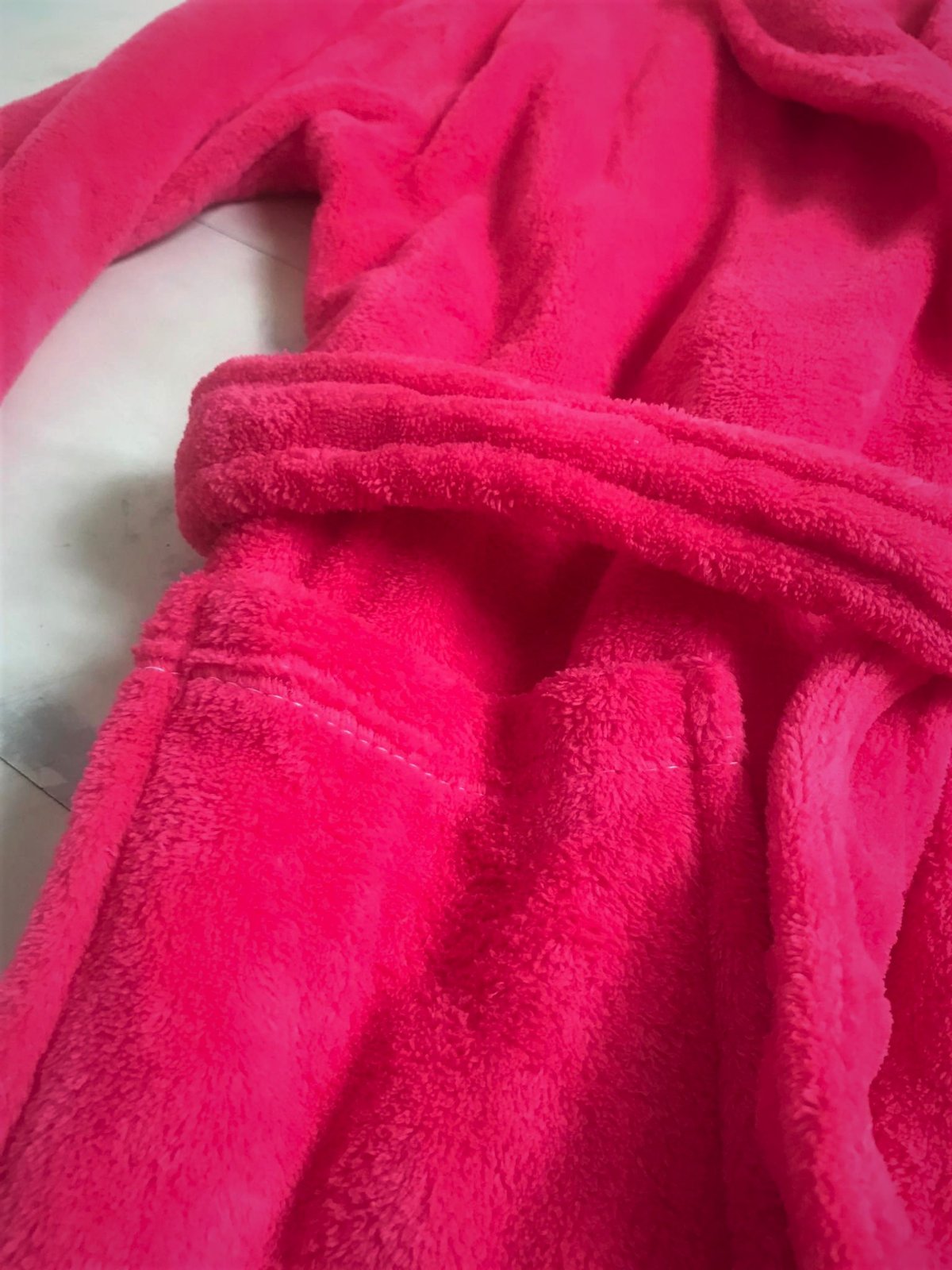 luxusný huňatý teplý dlhý župan v prekrásnej ružovo-červenej farbej,veľké vrecká,veľmi ľahký teplý,ako bývajú tie husté kvalitné deky,dlžka celkom = 130 cm,dlžka od pazuchy smerom dolu,meraná na boku = 96 cm, rukáv = 60/61 cm,šírka meraná podpazuchami na zadnom diele = 78/79 cm