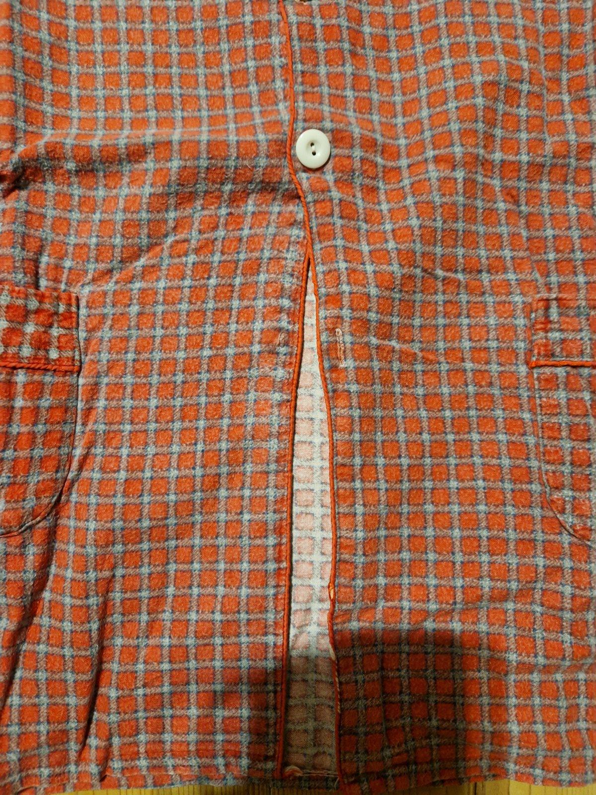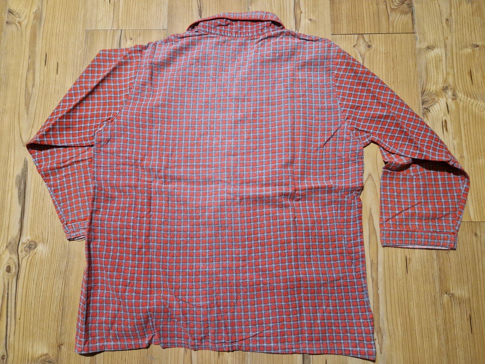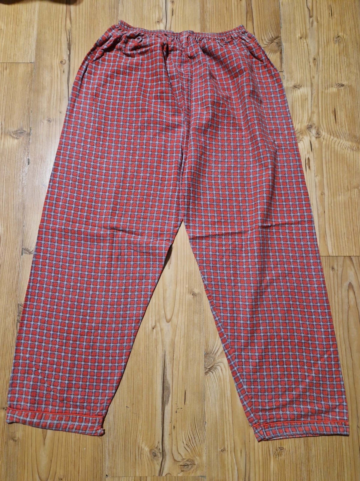 Predám pánske flanelové pyžamo. Veľkosť písaná XXL ale nie je až také veľké. Nosené čo je aj vidieť /niekde farba spraná/. Chýba 1 gombík /viď foto/.