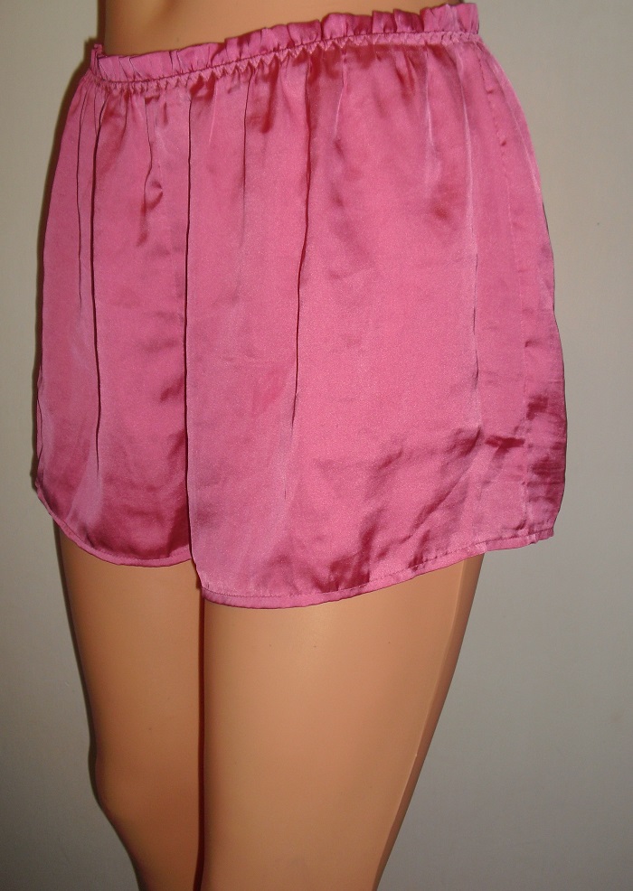 predam nadherne ruzove satenove kratasky na spanie, nadhernom vybornom stave, znackove hm, velkost uvedena s, ale idu aj na m. pas je elasticky 37 cm x 2 az 48 cm x 2, vyska predok 30 cm. v pase su zdobene volanikmi.