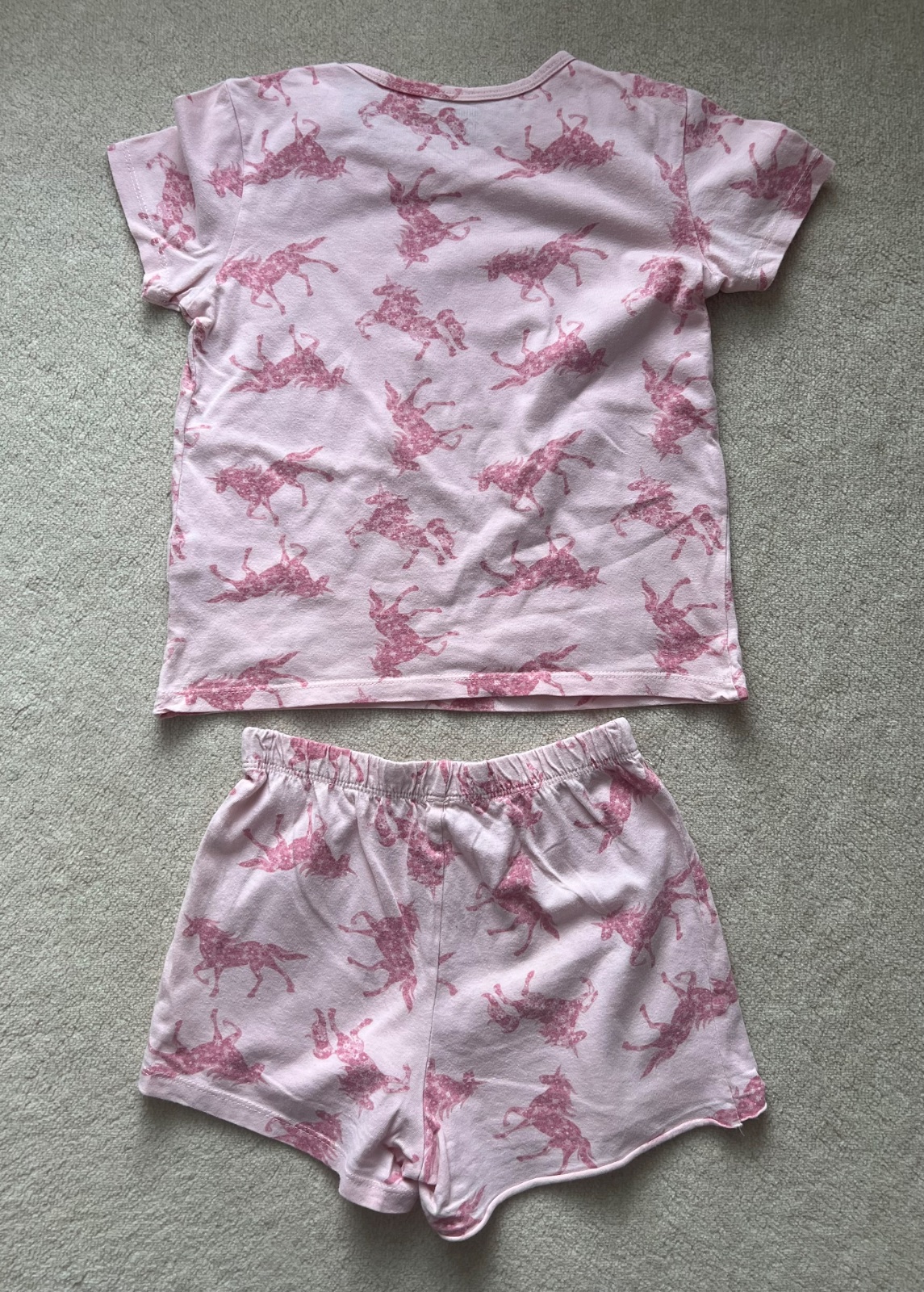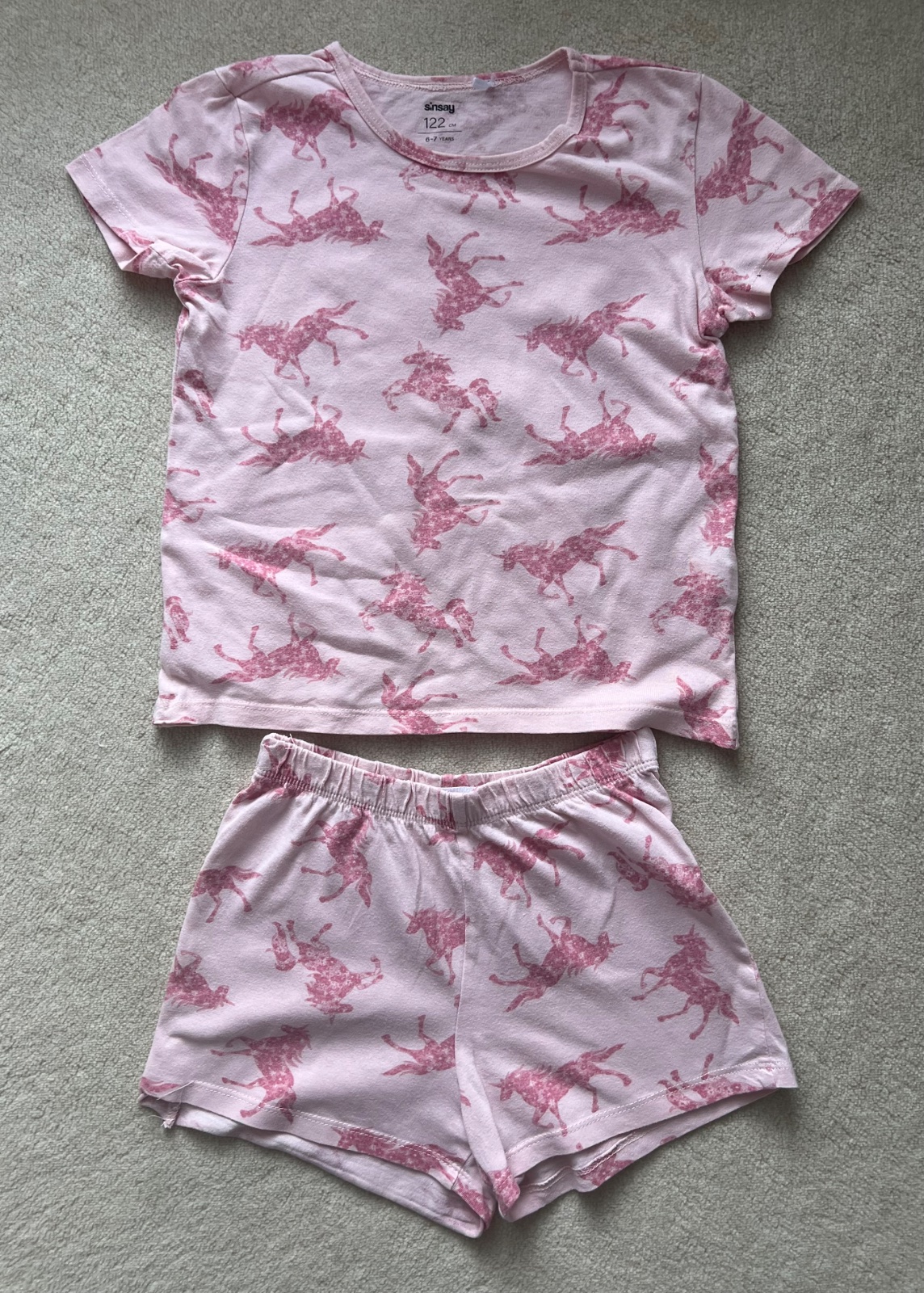 Veľmi príjemné pyžamko na leto pre dievča. Nemá fľaky, dierky, poškodenia ani žmolky.