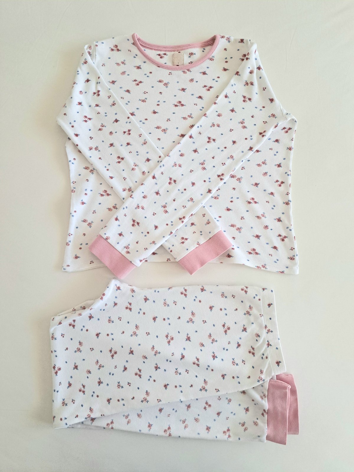 Krásne pyžamko z kvalitnej hrubšej bavlny jemnej na dotyk. Pohodlné, milované. Lemy na rukávoch a členkoch. Kupované v John Lewis v UK. Bez poškodení. Udávaná veľkosť 152 (12 rokov).