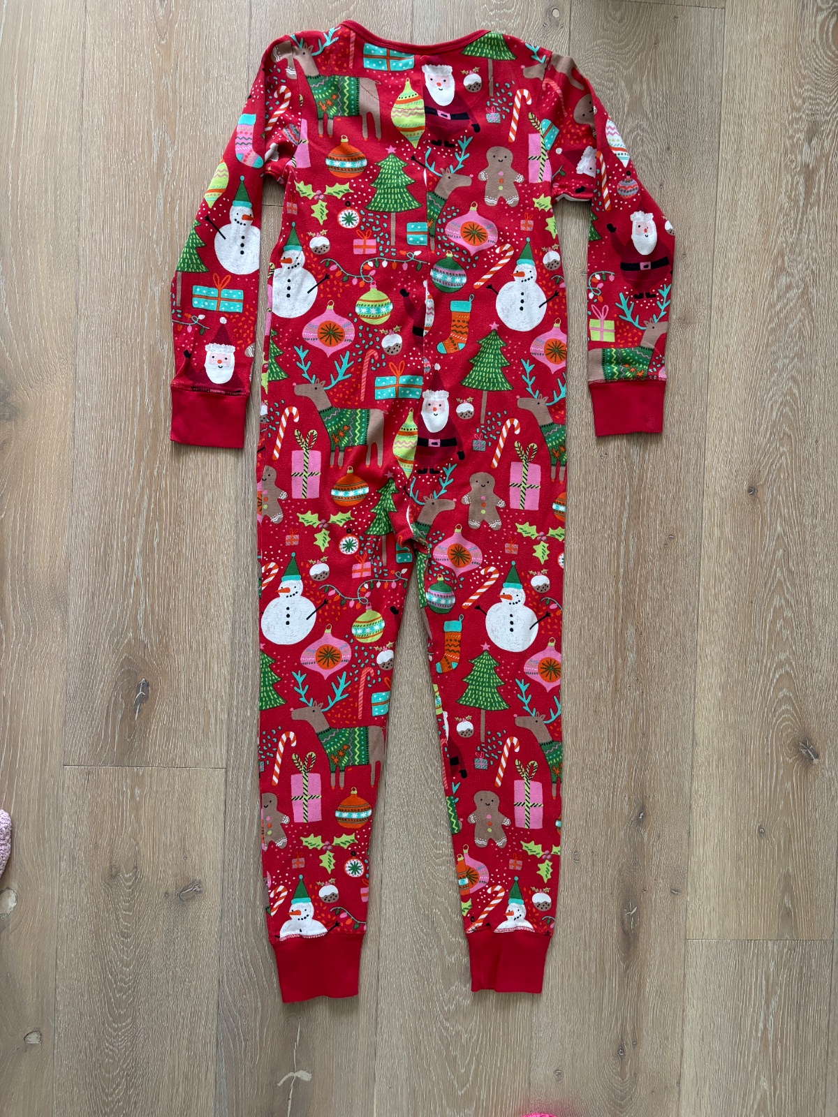 Krásny pyžamový overal s vianočným motívom.
