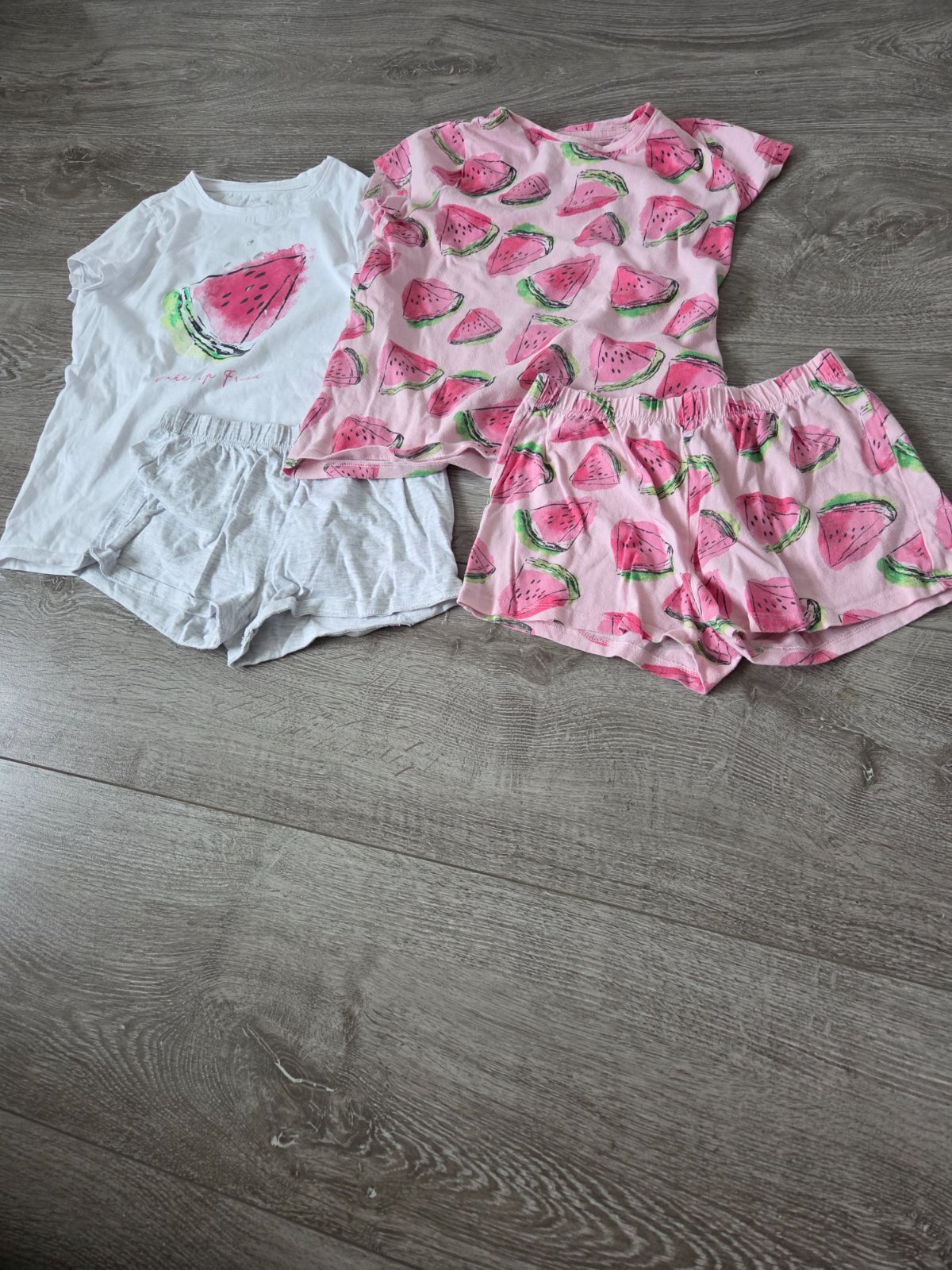 Párkrát oblečené pyžamká, ako nové. Veľkosť 128_134. Cena za obidve spolu 8 €.