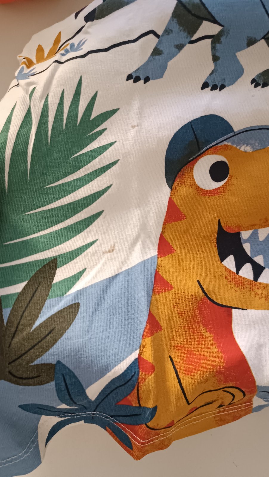 Pyžamo nosené málo, vpredu dva fliačky, neviem od čoho, odfotila som,,, inak vo výbornom stave bez iných poškodení