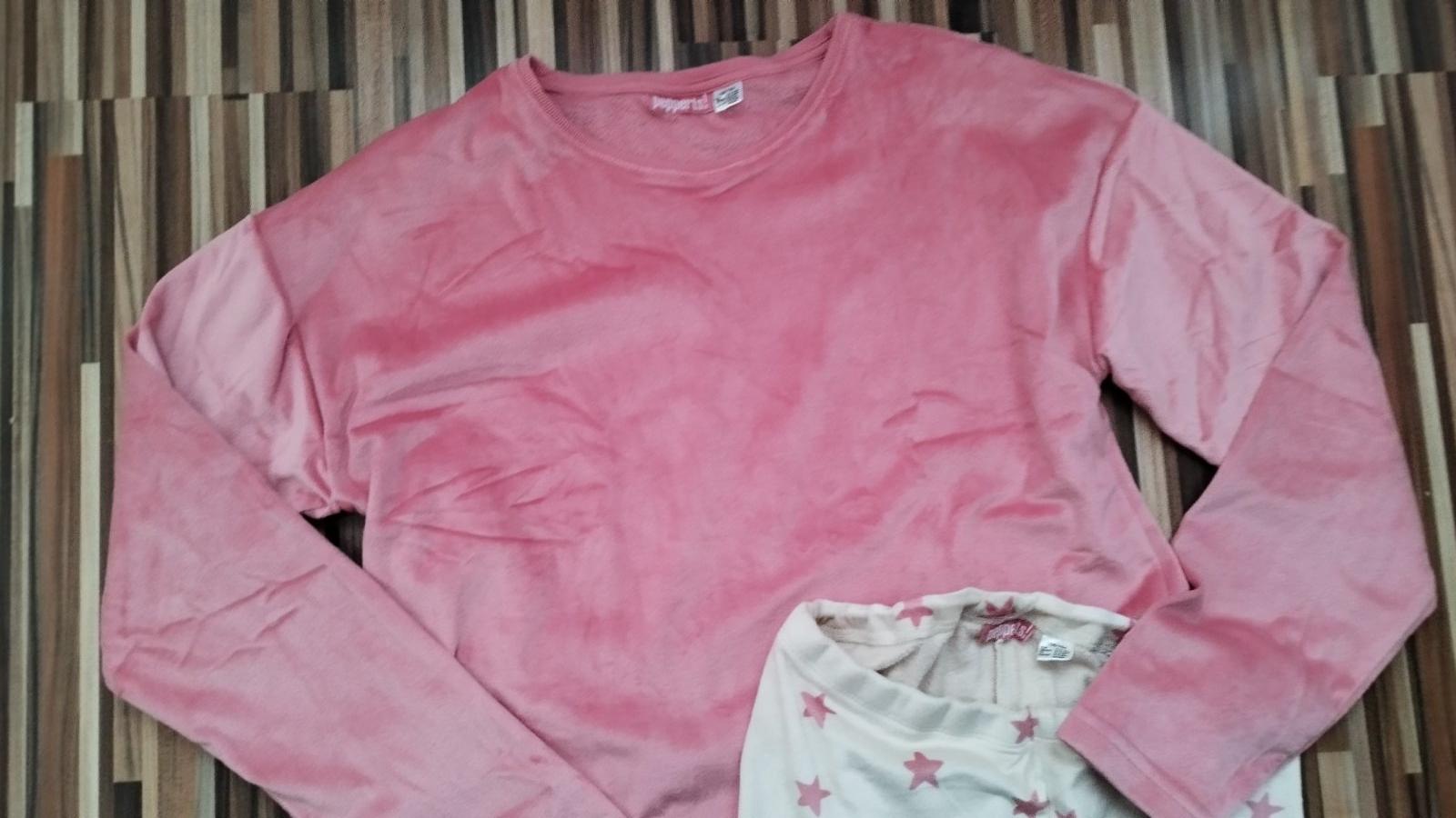 Dvojdielne teplé pyžamo vo výbornom stave, len vyskúšané , nohavice sú priliehavé, tričko voľnejšie, príjemný mäkký teplý materiál, krásne farby, pás 66-80cm