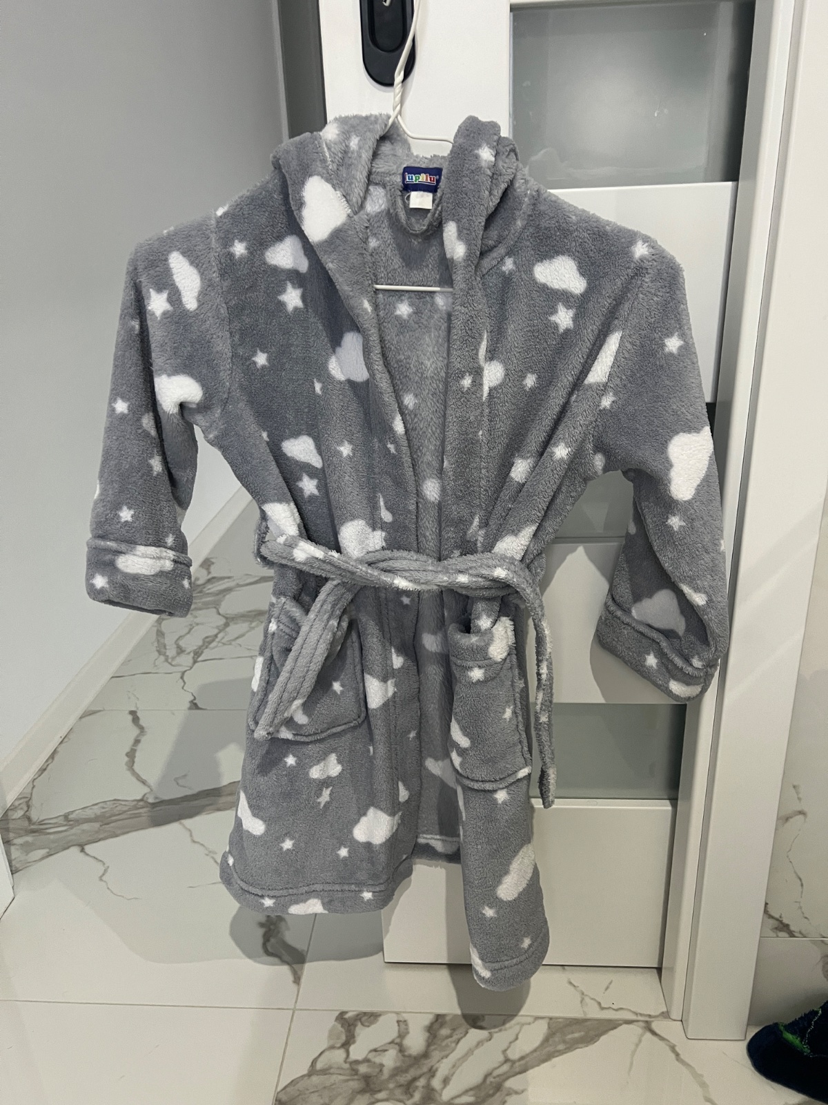 teplučký neznosený župan,hustý froté-flis,šírka meraná na chrbte = 70 cm,dlžka celkom = 115 cm,rukáv od krku = 79 cm, ramená = 20 cm,samotný rukáv = 59 cm