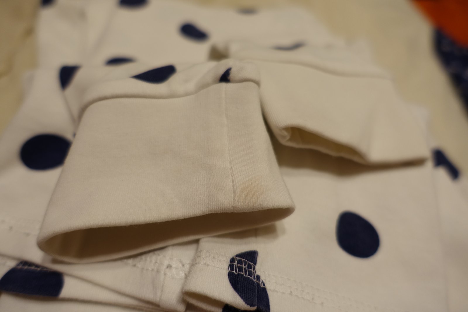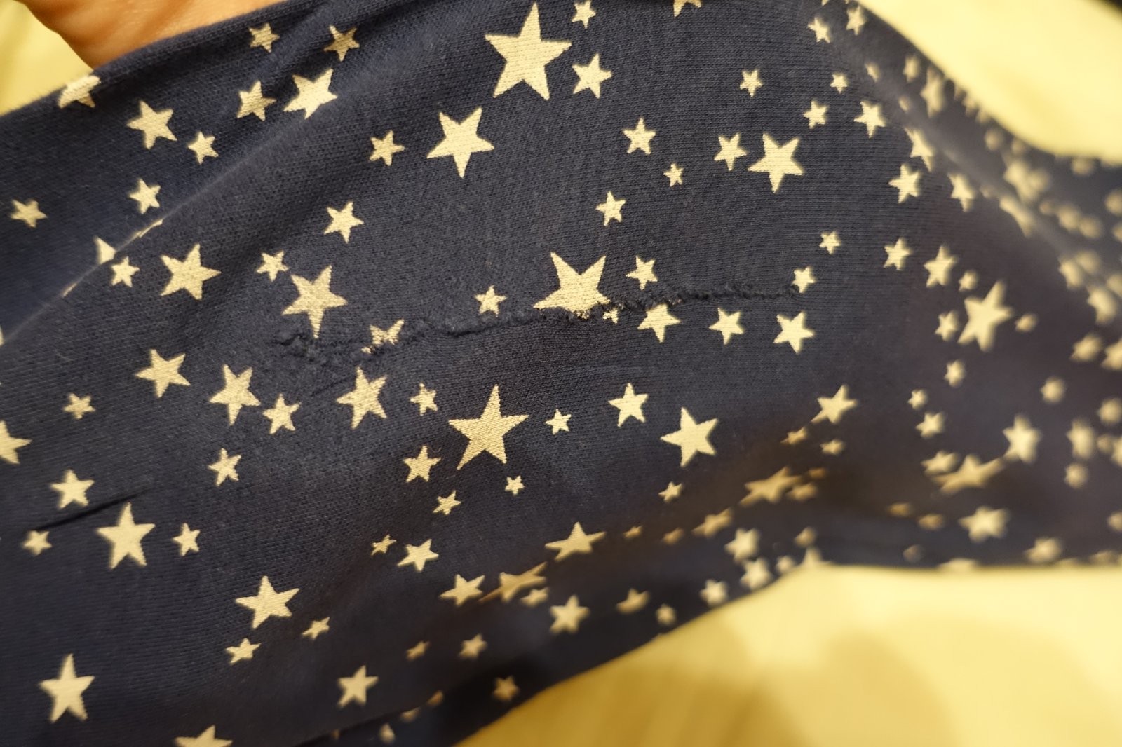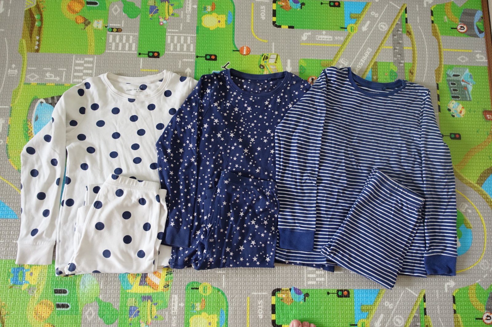 Predám krásne pyžamká 3 ks. Sú vhodné už len pre nenáročnú mamičku. Mali sme ich síce len pár krát, ale majú chybičky krásy. Pásikavé je v peknom stave. Na bielom som našla žiaľ maličkú čiaročku na pyžamových nohaviciach a na rukáve jeden mini fliačik. A hviezdičkový vrch je výborný, len na jednej nohe sa urobil žiaľ rýchlik. Zašila som ho jemným stehom, nie je to ani tak viditeľné, iba minimálne, ale je tam 8 cm zvislá čiaročka od zašitia. Snažila som sa to pekne urobiť. My sme ho nosili aj tak. Ak by to niekomu nevadilo, pyžamká sú stále pekné, mäkké, pohodlné. Nie sú žmolkavé, len žiaľ majú tieto chybičky krásy. Predám iba spolu.