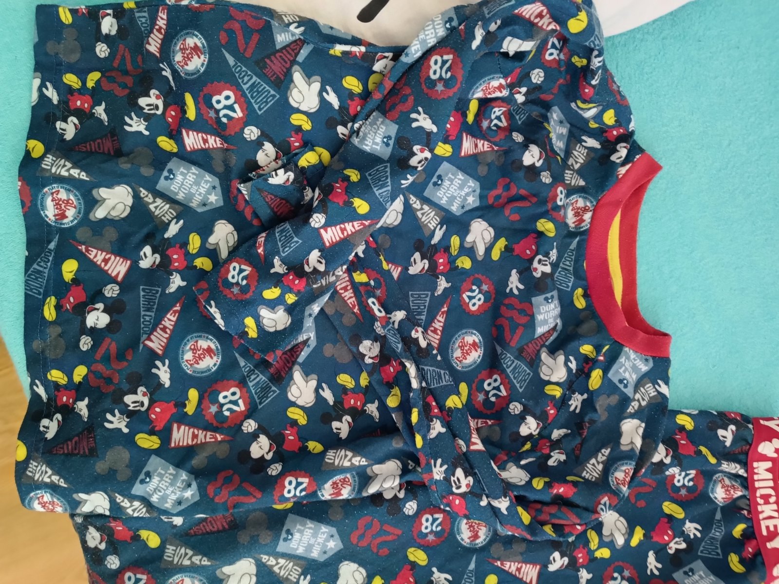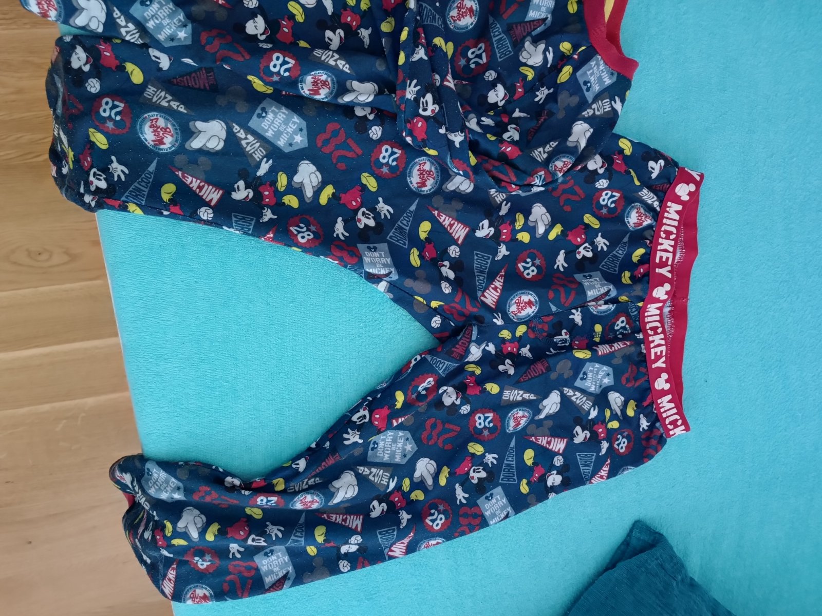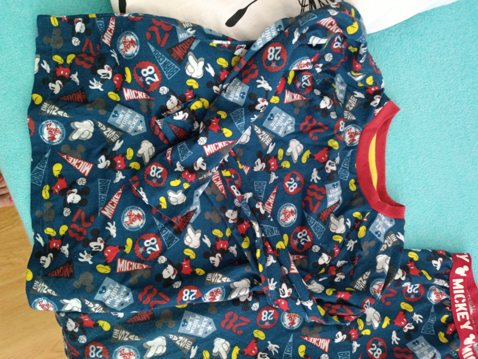 Synove obľúbené pyžamo, dosť nosené, má žmolky na vrchnej časti, zohľadnené v cene.