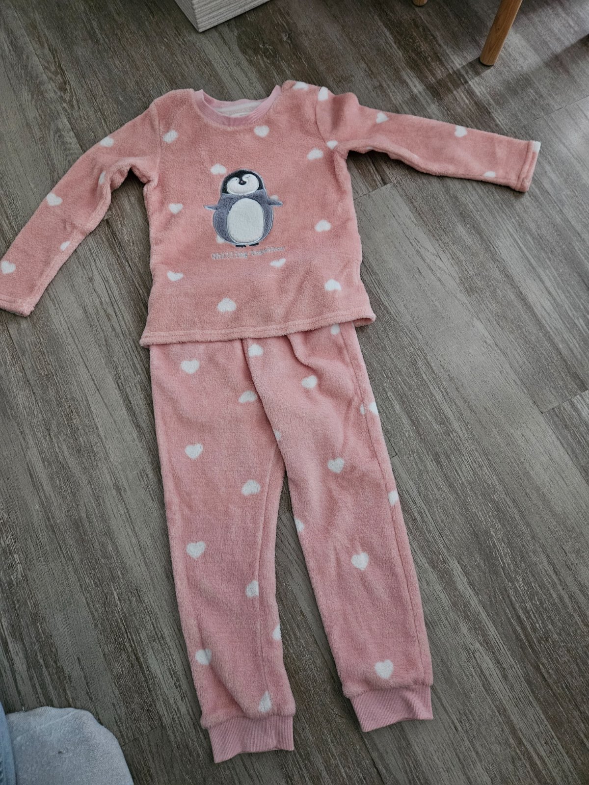 2 ks pyžamiek, veľ. 116 ale sedí skôr na 110. Na ružovom tričku z práčky vyzrážané fliačky...neviem prečo ale stáva sa mi to pri praní, viď. foto. Inak bez poškodenia sú krásne. Predaj a cena iba s...
