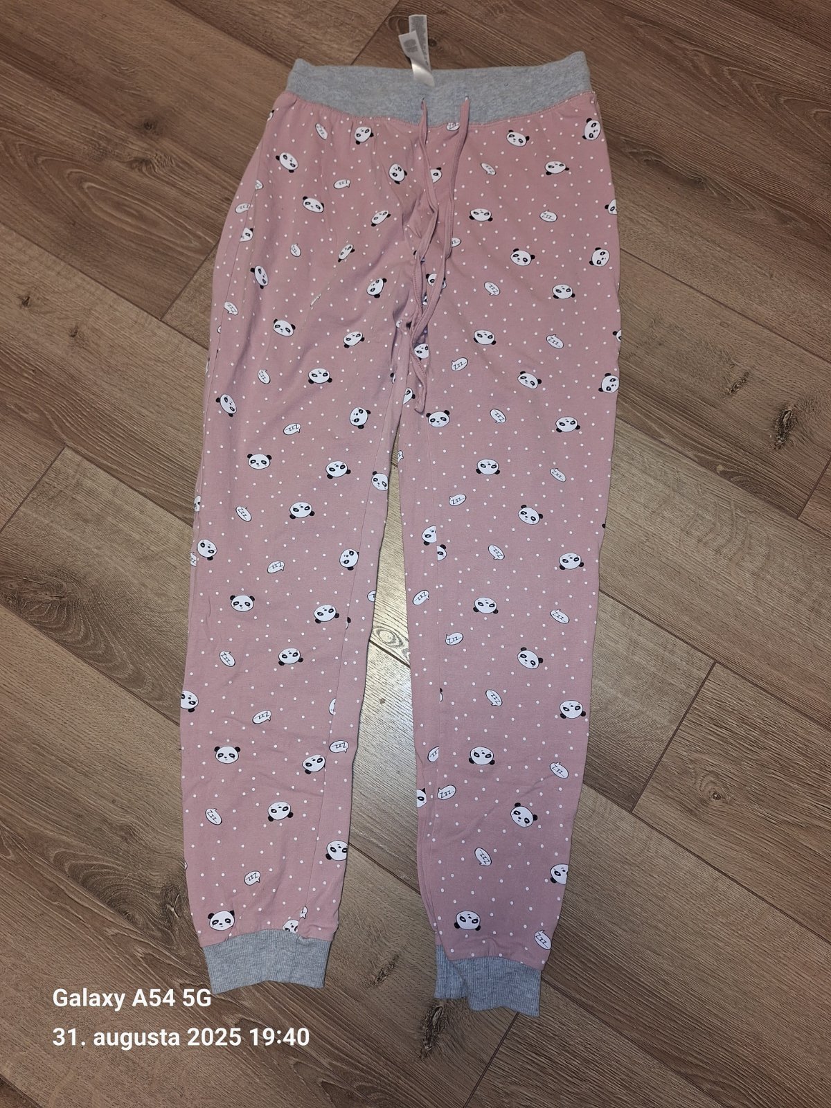 Pandového pyzamove nohavice. Veľmi pekný stav. Veľkosť 36. Dcéra ho nechce nosiť. Je milene. Dĺžka 04-95 cm. Pas 34-53 cm