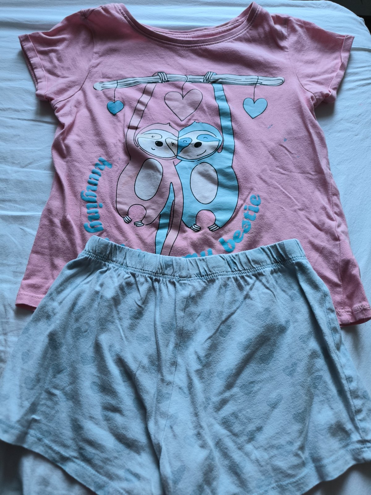 Ponúkam na predaj krátke pyžamká značky Reserved. Všetky tri kusy rovnaká veľkosť, 122/128. Na jednom pyžamku modré fliačiky, viď foto, inak bez poškodenia, pekný nosený stav. Možnosť po kusoch alebo spolu. Cena za všetky spolu 5,00 EUR.