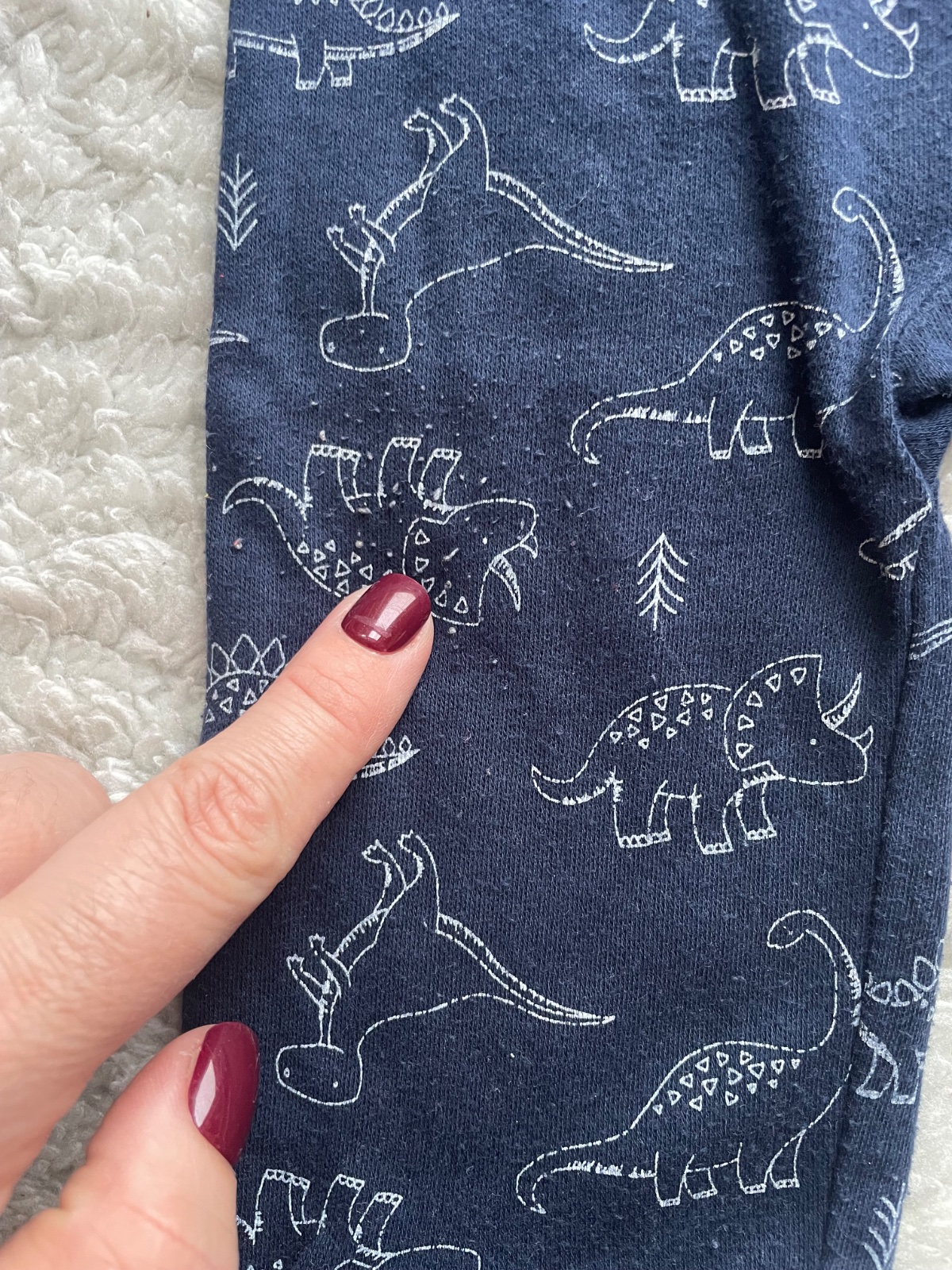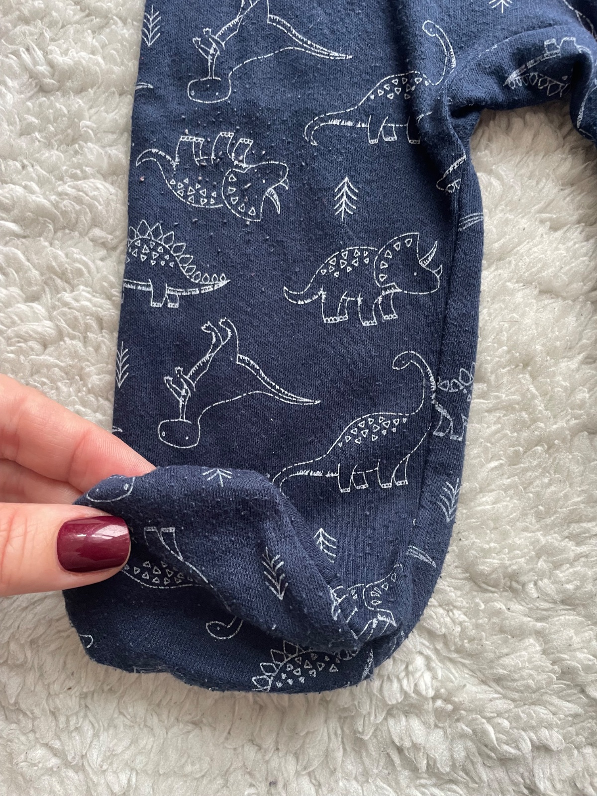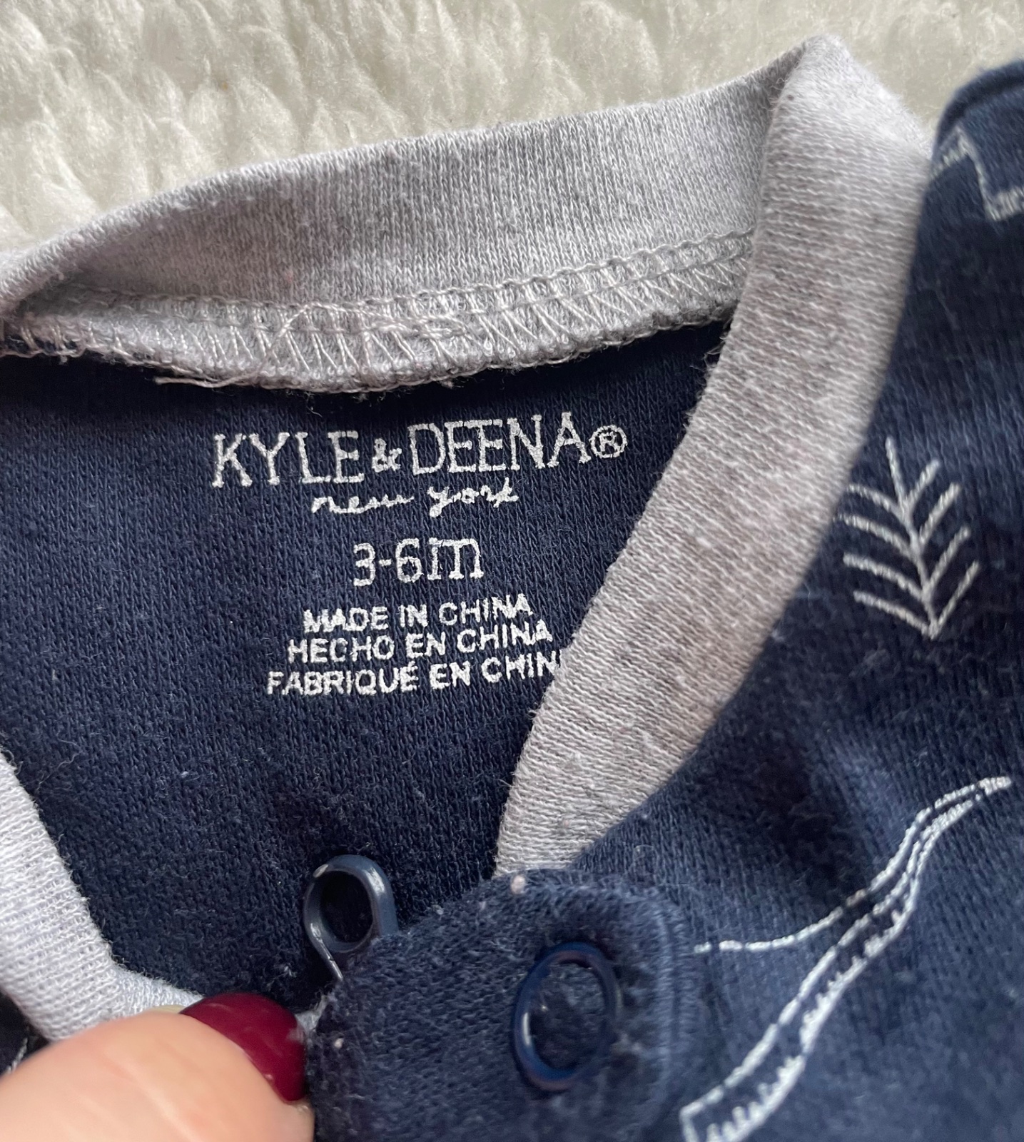 Tmavomodre zipsove pyzamko s dinosaurami a sedymi patentami, velmi prijemny material, bez dier a flakov, miestami zmolky, velkost 3-6 m, znacka Kyle&Deena