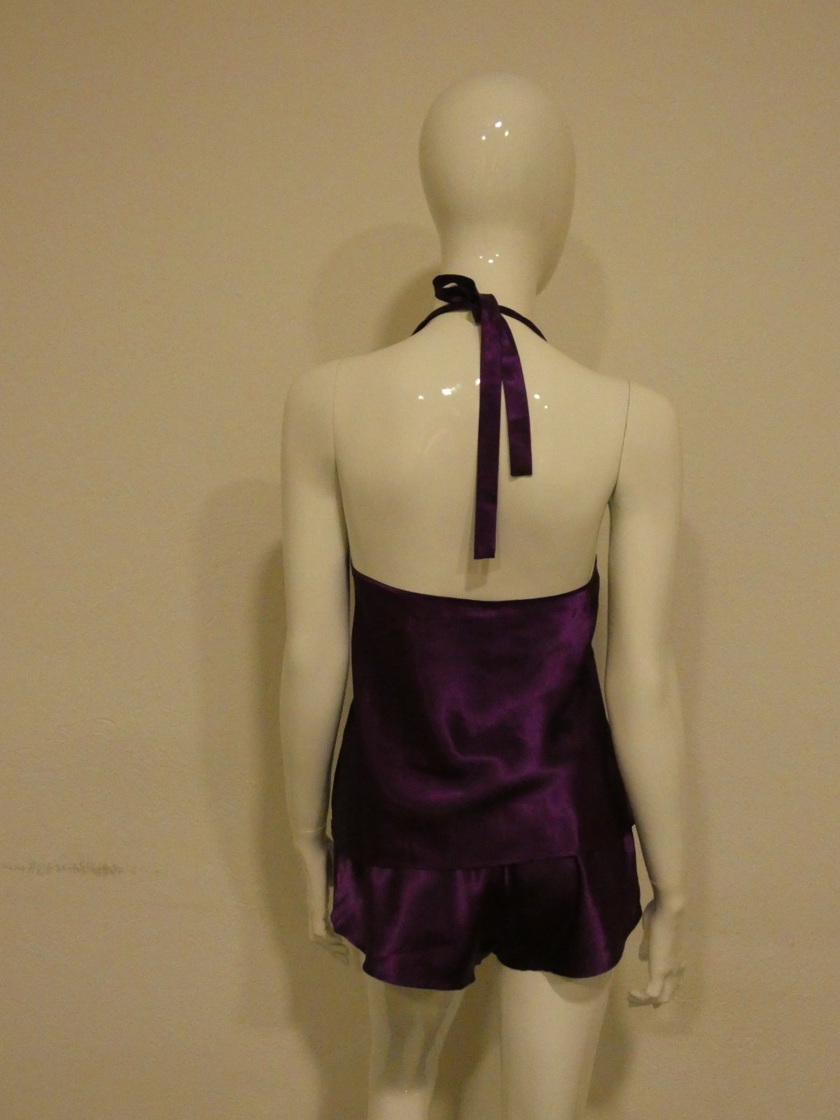 Pár krát oblečené, bez poškodenia .Materiál je 100% polyester. Rozmery sú vrchného dielu šírka pod prsiami 2x 38 cm ,dlžka 55 cm , spodný diel šírka v páse v nenatiahnutom stave 2 x 40 cm a v natiahnutom stave 2 x 51 cm ,bočná dlžka 23 cm.