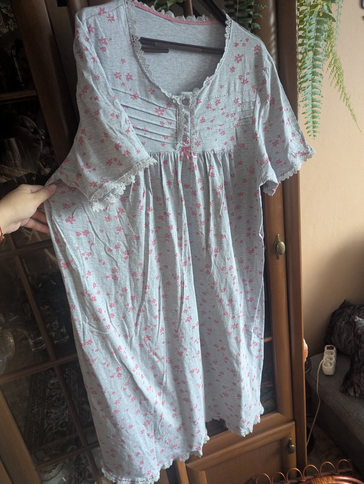 Dámska nočná košeľa, ktorá sedí na veľkosť 48/50, no každopádne sa treba riadiť rozmermi.