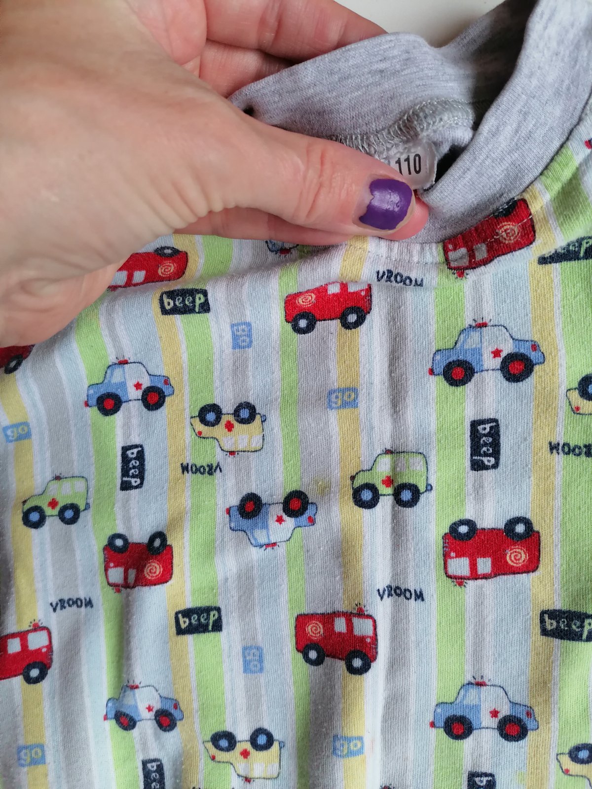 V zachovalom stave. Autíčkové ma jemný chĺpok, inak je super príjemná bavlna a dve bodky. Vrch pyžamka dino - darujem ku pyžamku.
