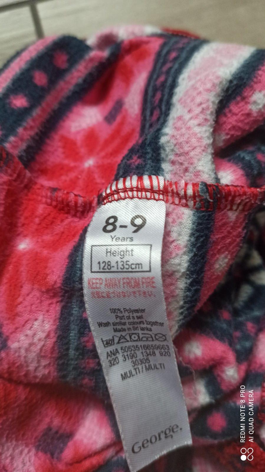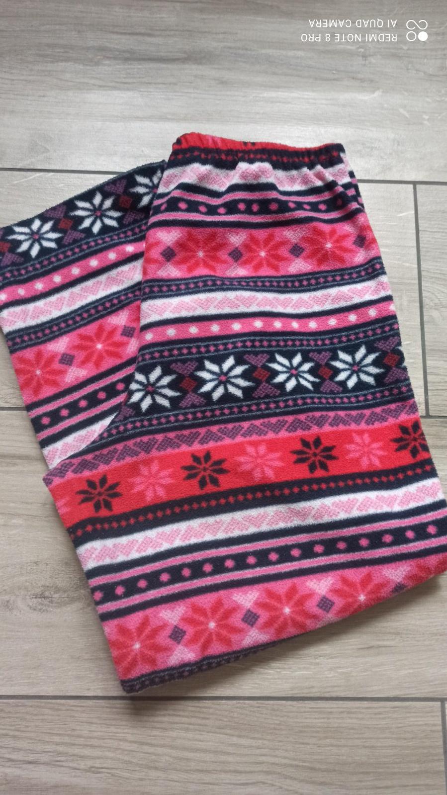 Teple pyzamko na chladnejsie dni. Bez poskodenia Velkost na 8-9 rokov. Vrchny diel: sirka 38cm, dlzka 50cm, rukav 38/ 58cm Spodny diel: sirka 29cm, noha 50/ 69cm