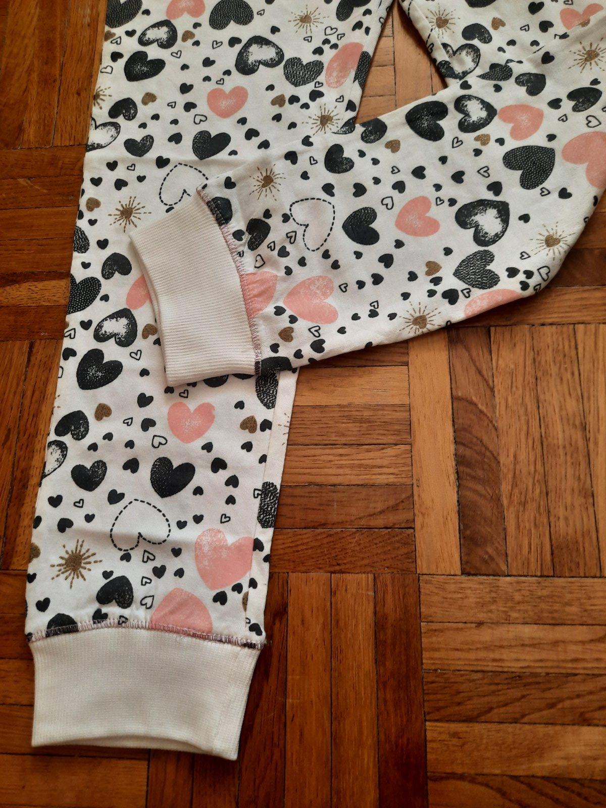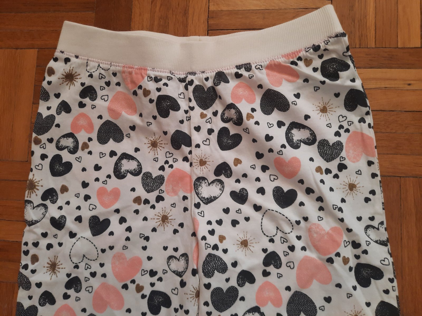 Predám teplé pyžamo, odhadujem veľkosť 128/134, materiál fleece. Dĺžka nohavíc 73cm, dĺžka od rozkroku 51cm, pás do gumy v nenatiahnutom stave 2x25cm. Vrchný diel dĺžka 49cm, dĺžka rukáva od rame...
