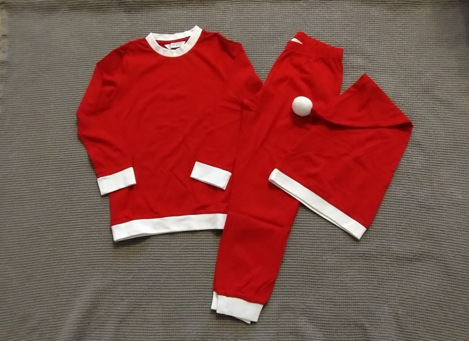 Vianočné kvalitné bavlnené pyžamo v top stave, bez poškodení. Rozmery trička: rukáv od krku 48cm, dĺžka meraná od ramena nadol 48,5cm...nohavice pás vkľude 24,5cm natiahne sa aj do 34cm, dĺžka 66,5cm. Dvojčíslo 110/116.