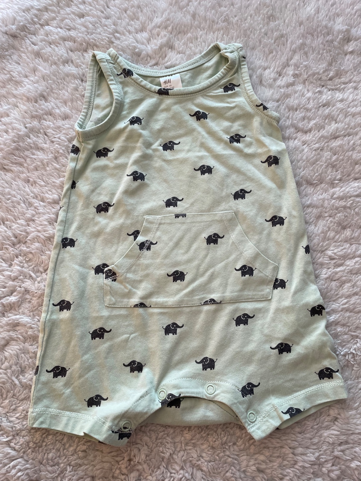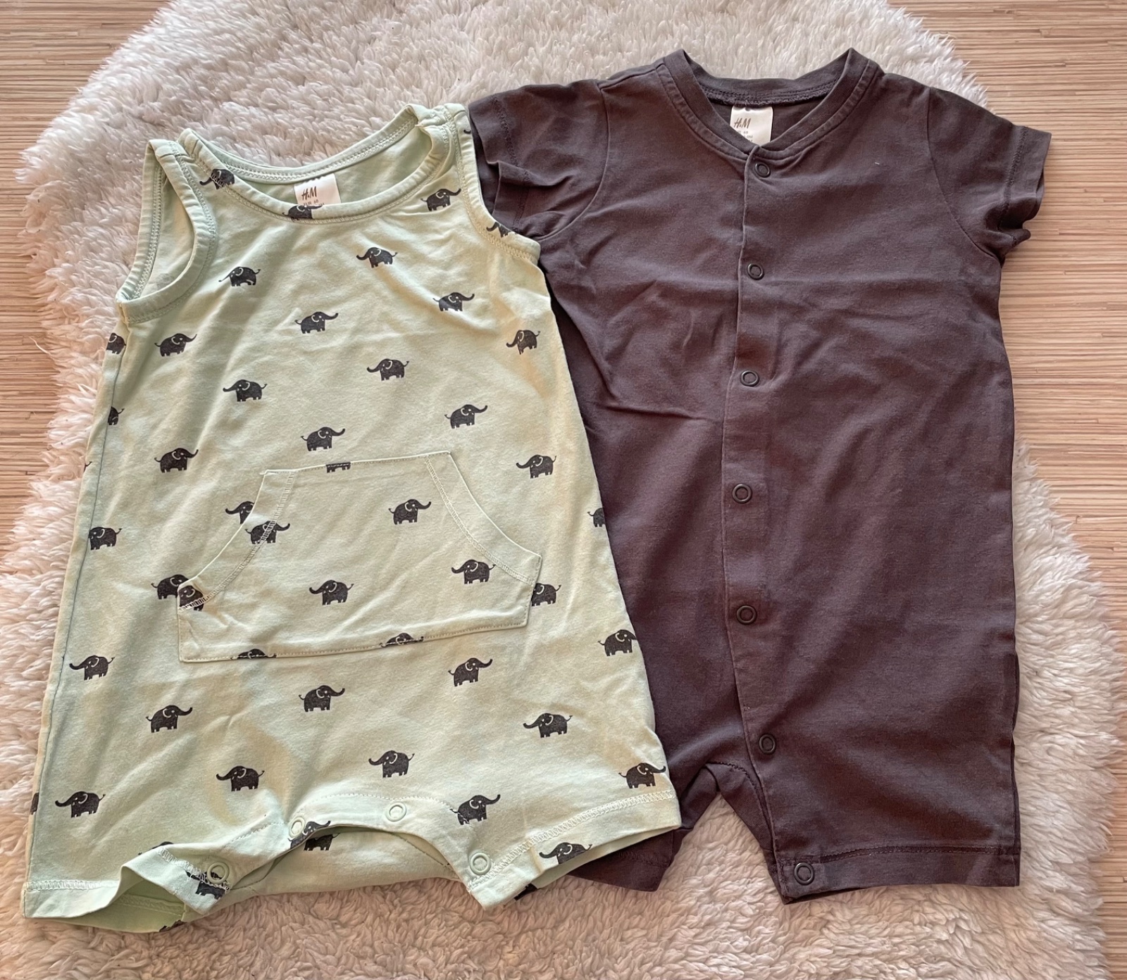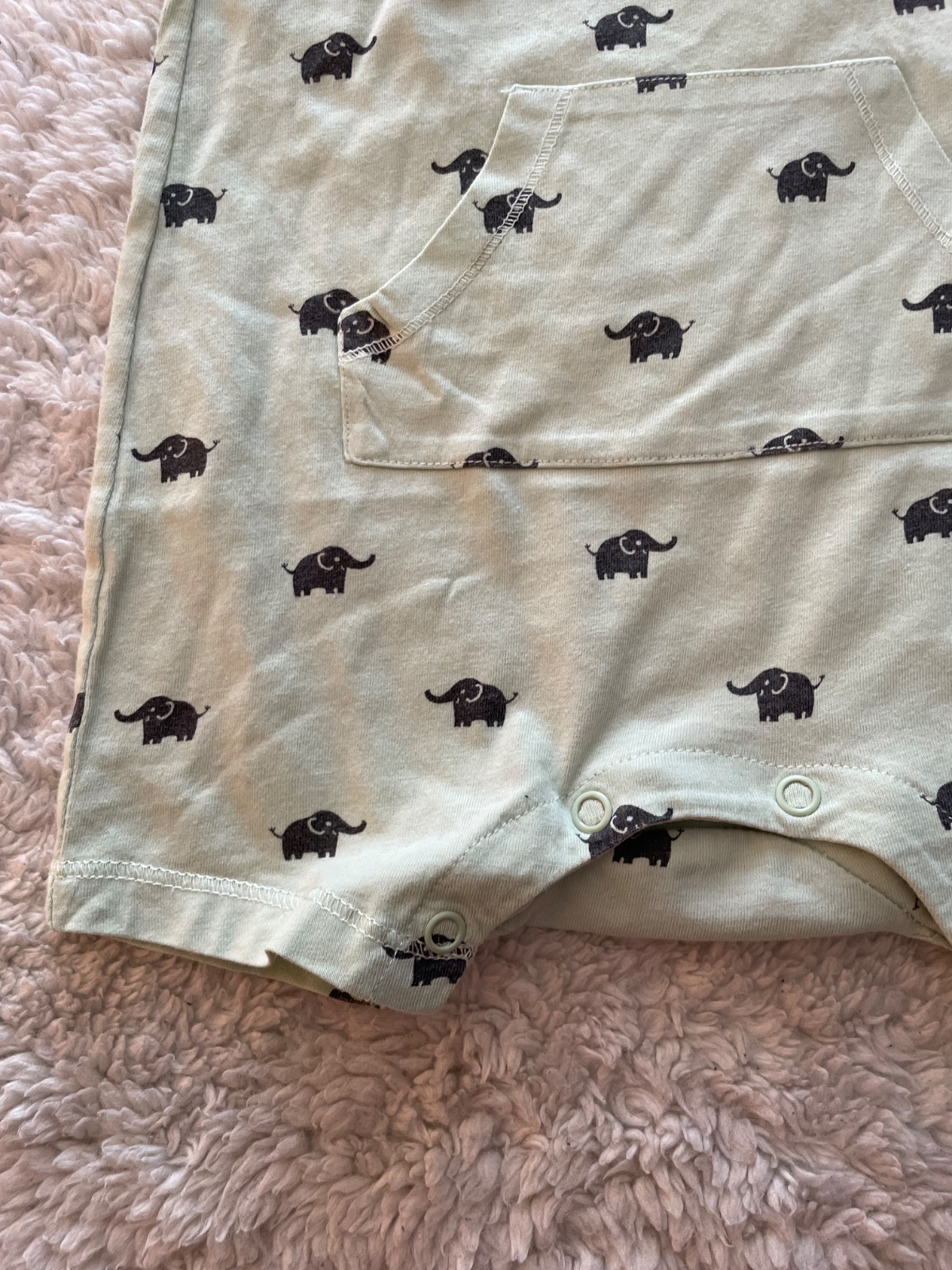 Bavlnene letne pyzamka na cvocky, jedno hraskovozelene so slonikmi, druhe antracitove, farby su krajaie nazivo, skreslila fotka, bez dier a flakov, velkost 68