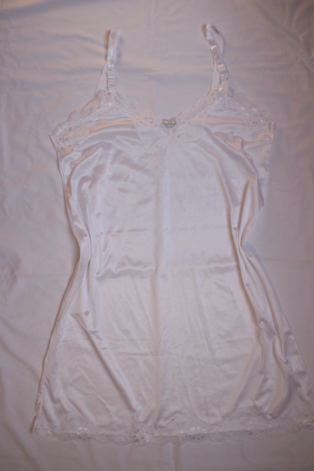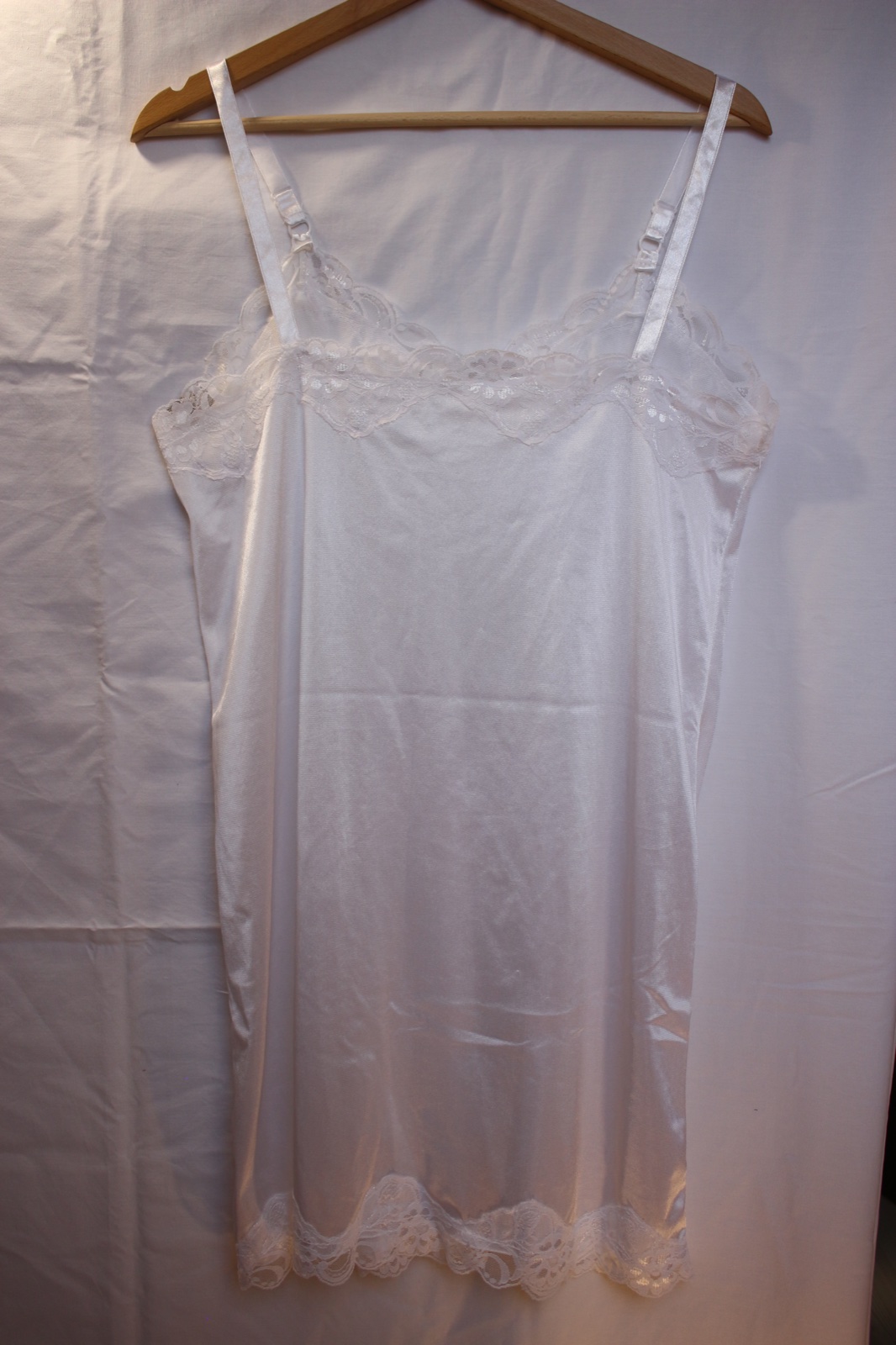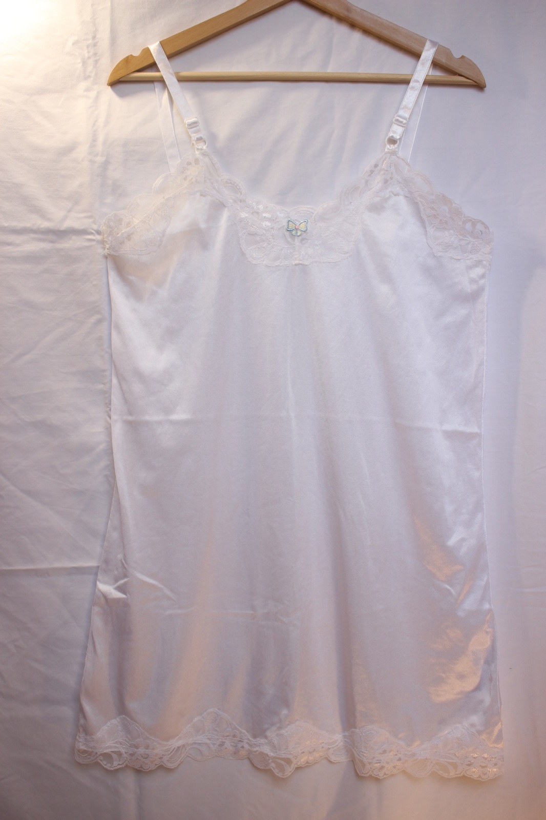 Táto dámska biela nočná košeľa je nežná, ženská a nesie v sebe romantický vibe 90. rokov.
