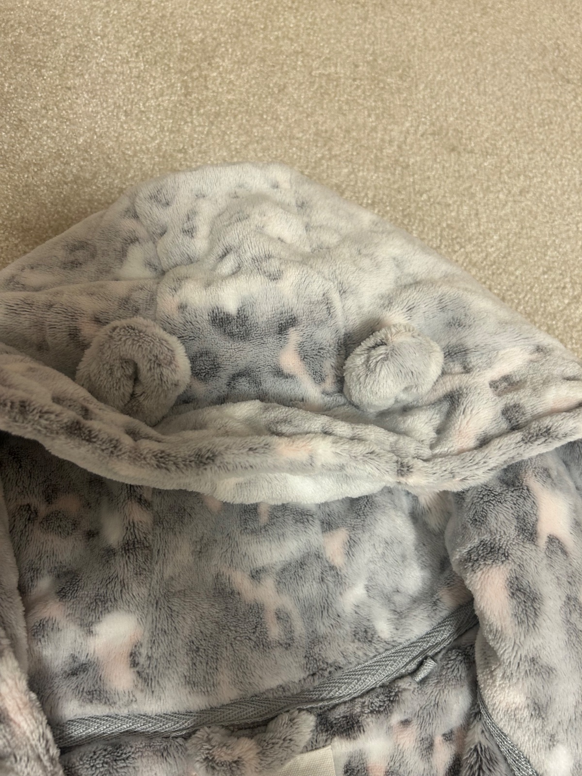 Teply chlpaty overal Macko, vhodny ako teple pyzamo, domace oblecenie alebo maska na karneval. Len parkrat obleceny, super stav. Dlzka od ramena po spodok 138cm, od vystrihu po rozkrok 65 cm, obvo...