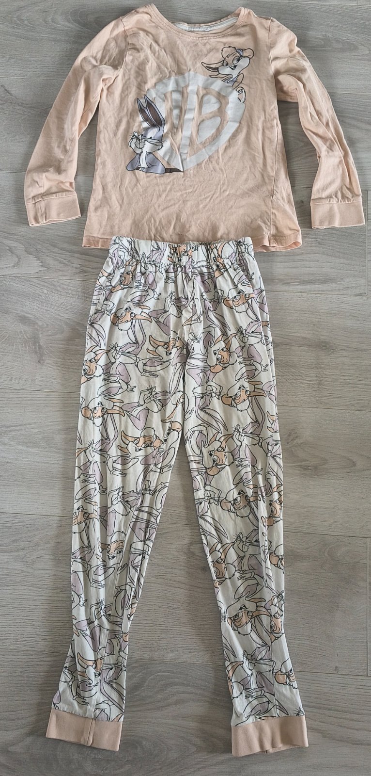 Predám používané pyžamo s dlhým rukávom, bežné známky nosenia, odhadujem veľkosť 134, dĺžka vrchného dielu 48 cm, šírka pod pazuchami 35 cm, dĺžka rukáva od ramena s patentom 47 cm. Pás v nenatiahnutom stave 2 z 24 cm pridávaná guma, dĺžka od rozkroku s patentom 56 cm.