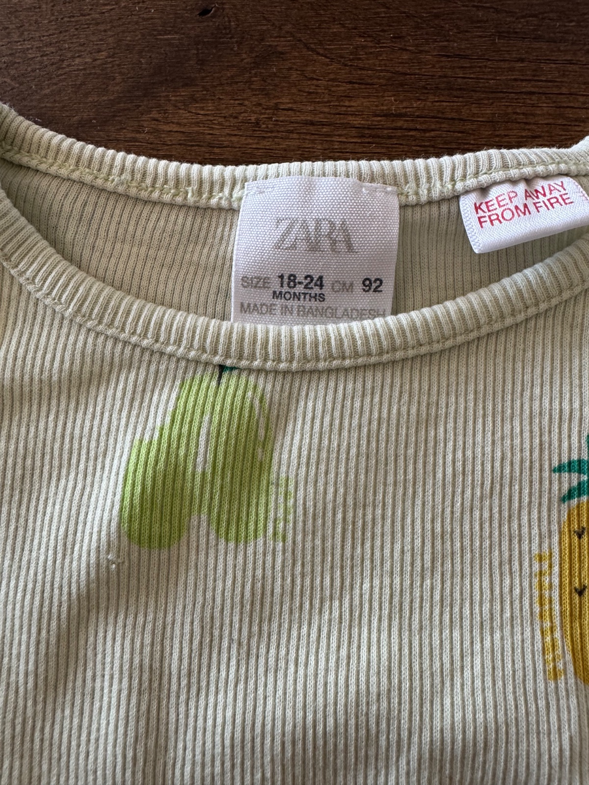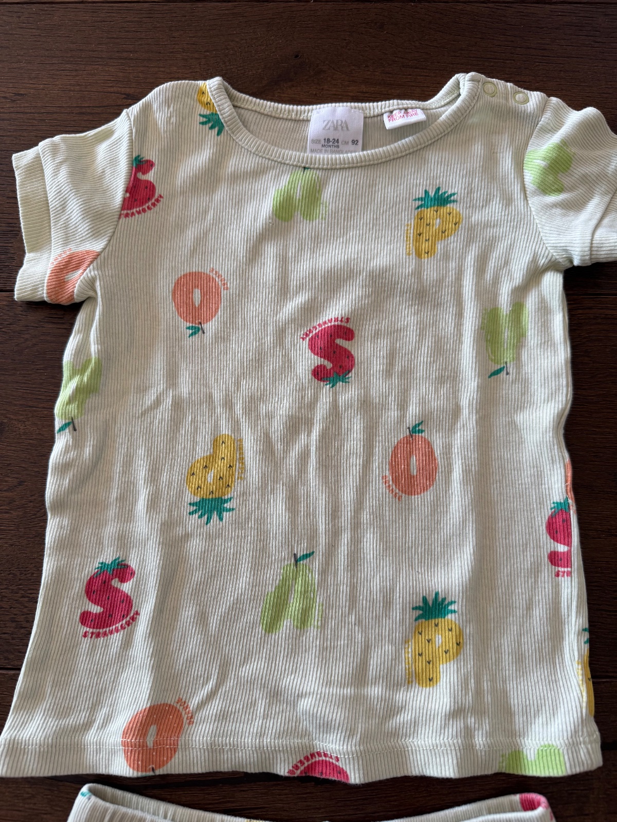 Pyzamko Zara v peknom nosenom stave vo velkosti 92. Na vrsok mensia vada, zatiahnutie(mini dierka) je to odfotene