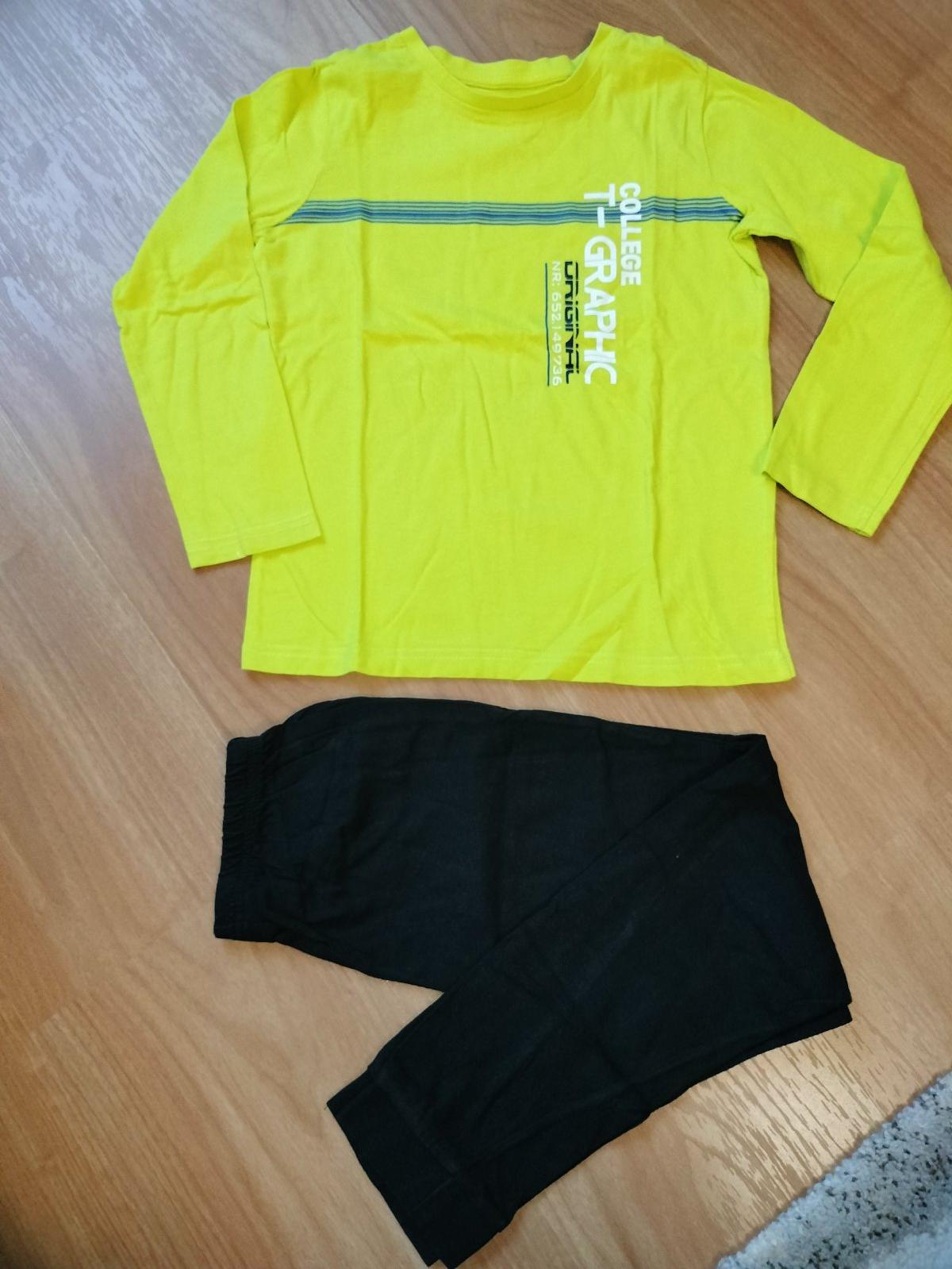 Pyžamo s dlhým rukávom a dlhými teplými nohavicami, veľkosť 122 - 128.