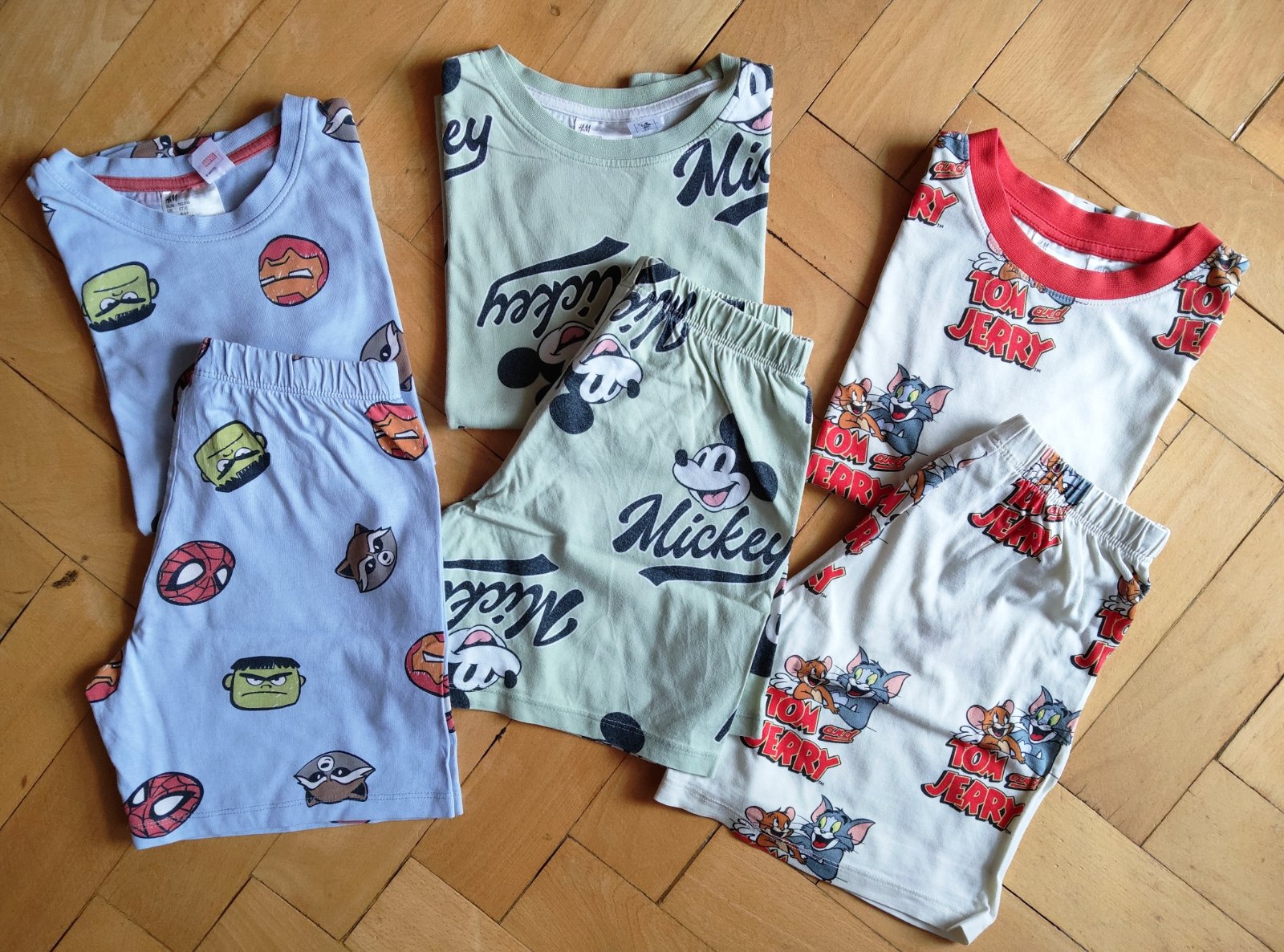 Pyžamá nosené jednu sezónu, bez poškodenia. Na zelenom je vidieť pranie, ostatné v super stave. Predávam všetky spolu.