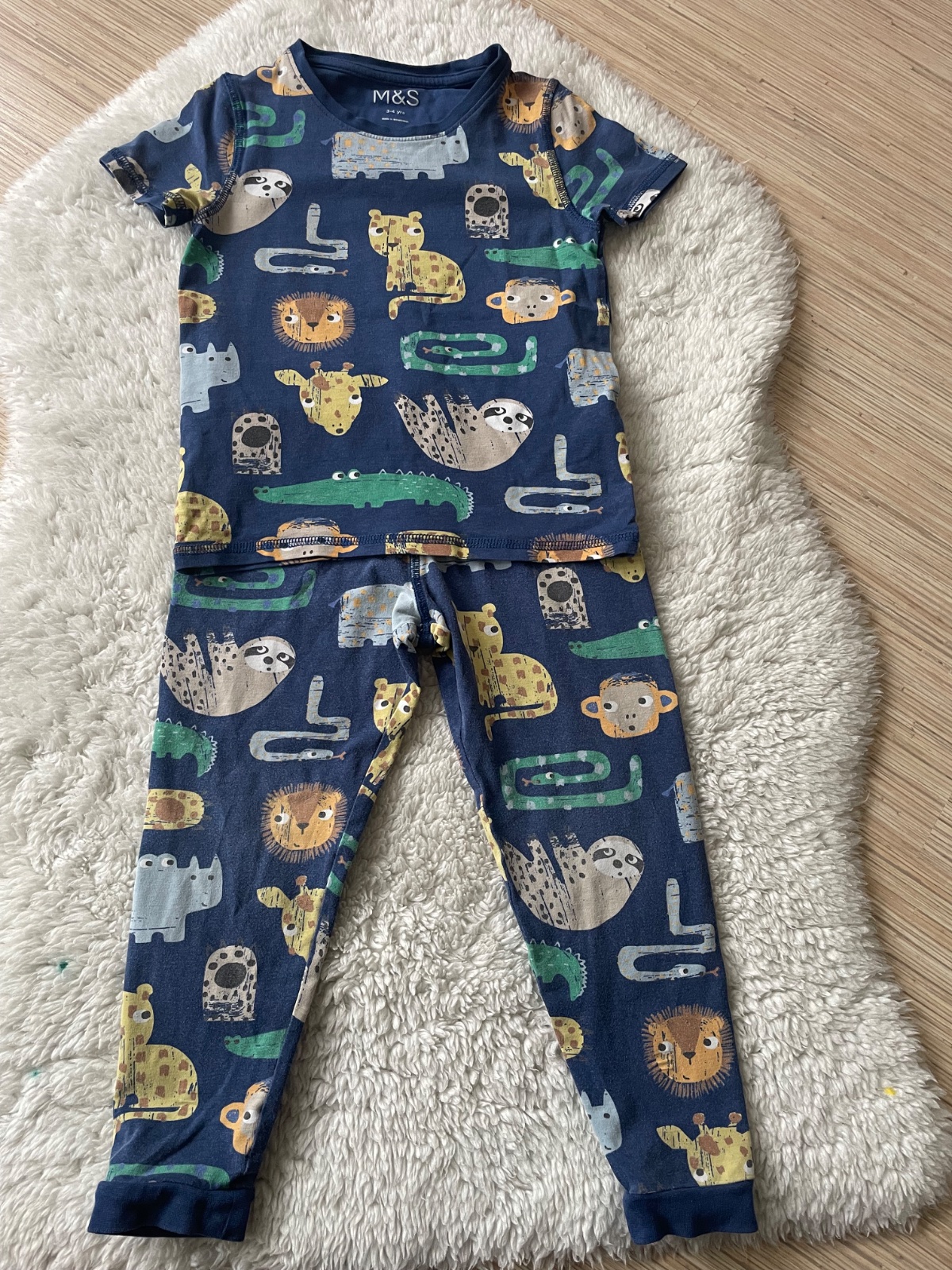 Bavlnene dvojdielne pyzamo s trickom s kratkym rukavom, motiv zvieratka, bez dier a flakov, len farba je uz vypratejsia