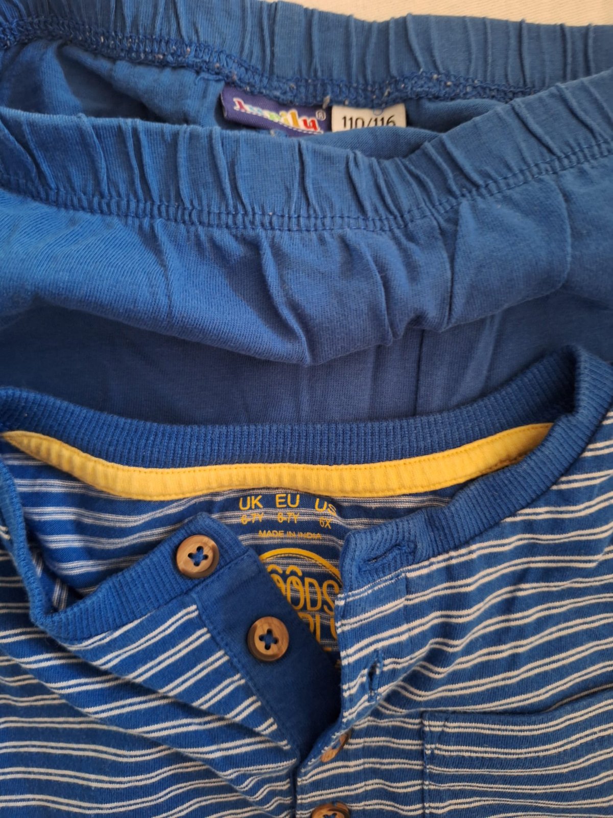 Posuvam letne pyzamo kratky rukav, dlhe nohavice kombinacia tricko F&F 122 a nohavice Lupilu 110-116 s patentom dolu, sadlo na velkost 116, moznost kupit aj samostatny diel darcek zdarma