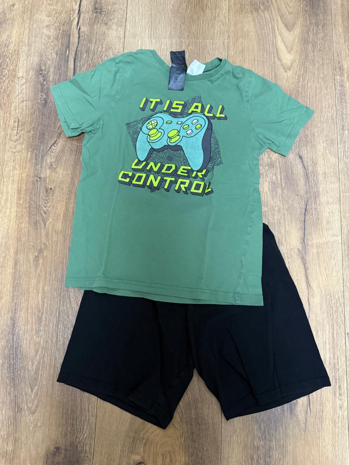 v dobrom nosenom stave, vzadu na tričku dierka od visačky, na šortkách vydraté dierky v okolí pásu, na farbe mierne vidno pranie, tričko je dlhé 57 cm a široké 43 cm x 2, šortky sú dlhé 53 cm, od r...