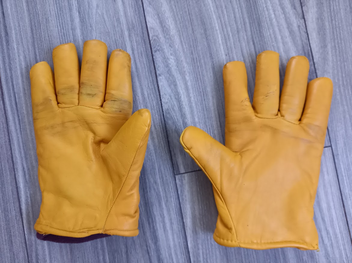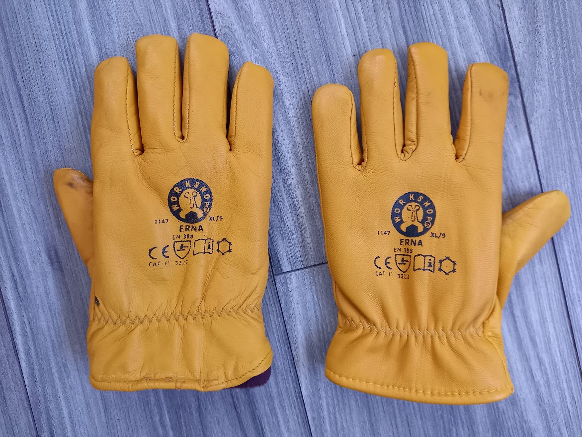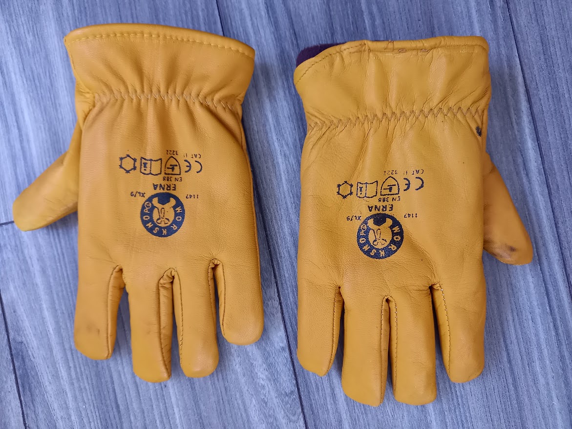 Kožené hrubé vyteplené pracovné rukavice. Cena 1,50 € + poštovné.