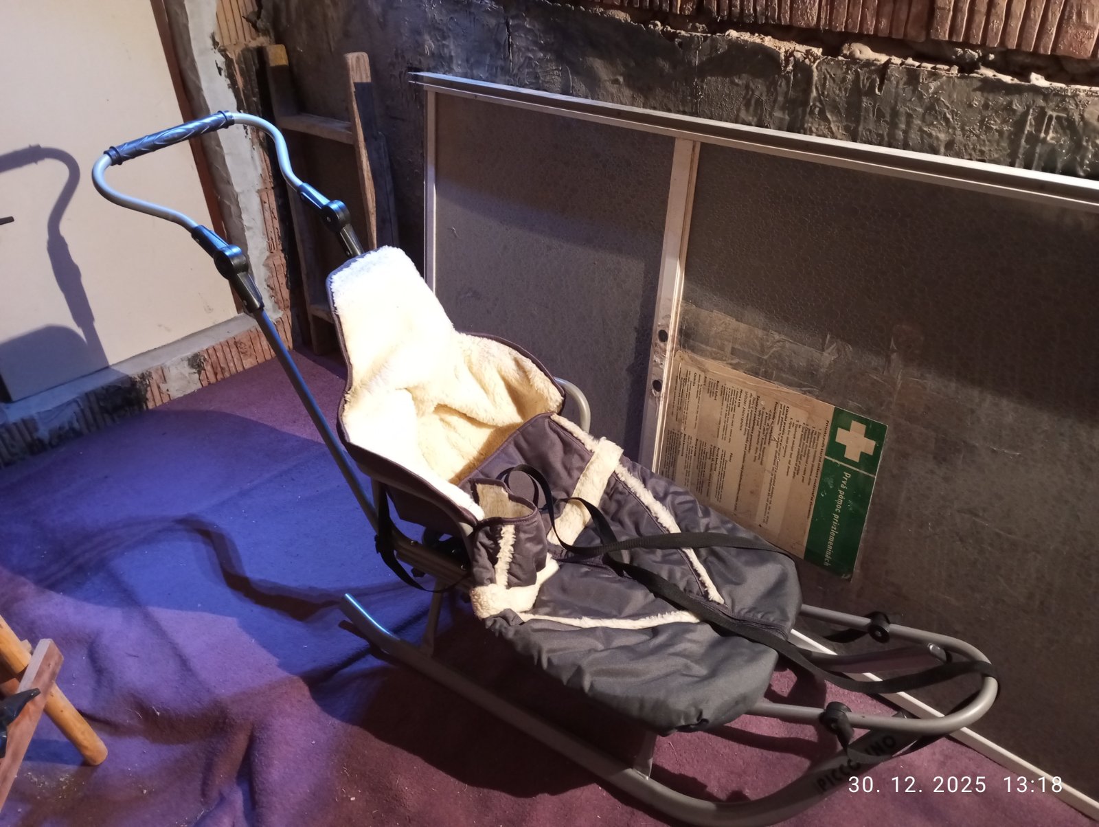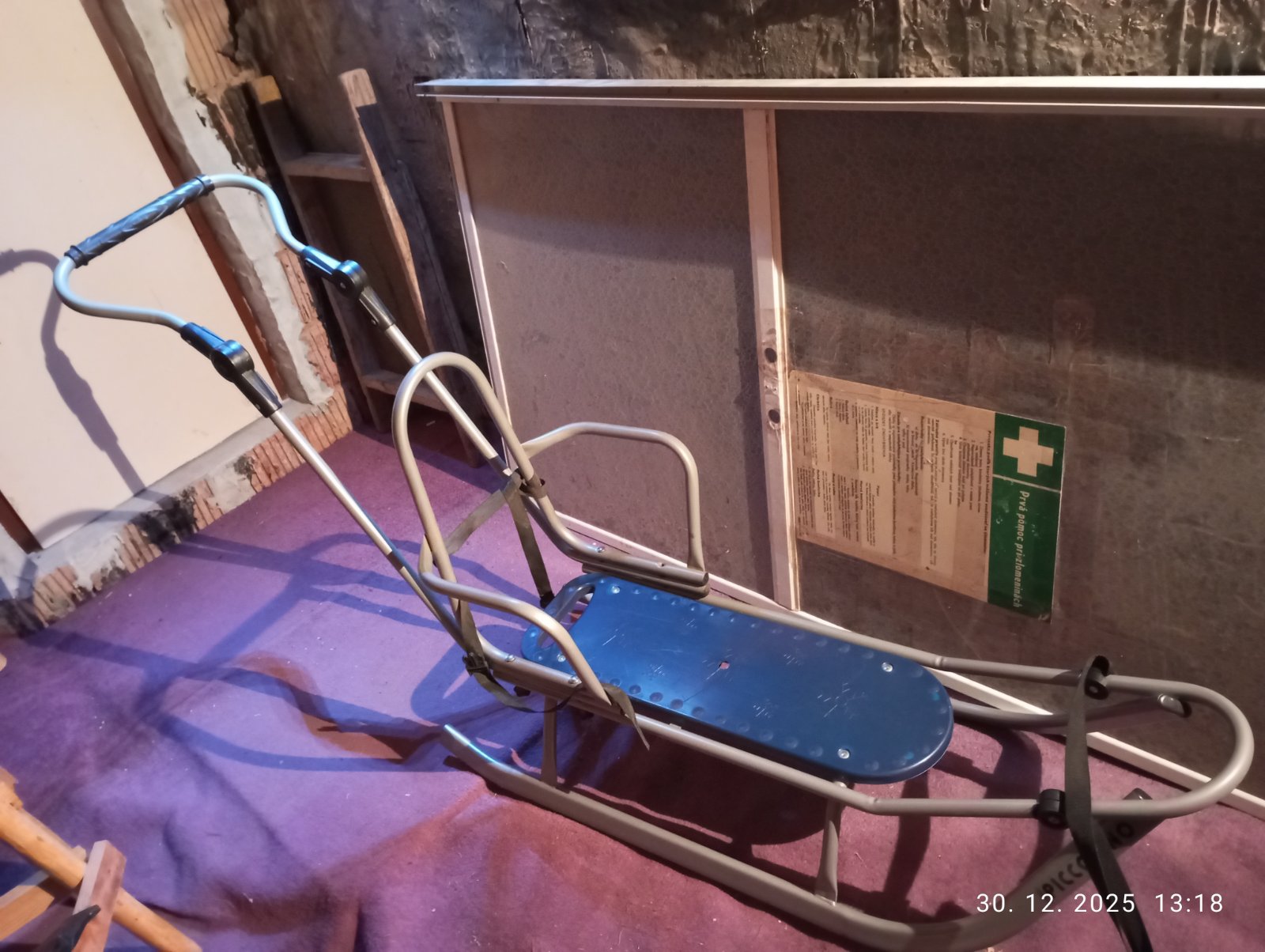 Dobrý stav. Nastaviteľná výška rukoväte. Odnímateľná rukoväť a operadlo. Fusak vlnený.