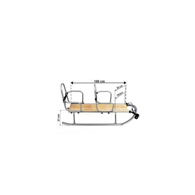 Pohodlné a veľmi odolné kovové sane pre dve deti, so sedadlami usporiadanými za sebou.