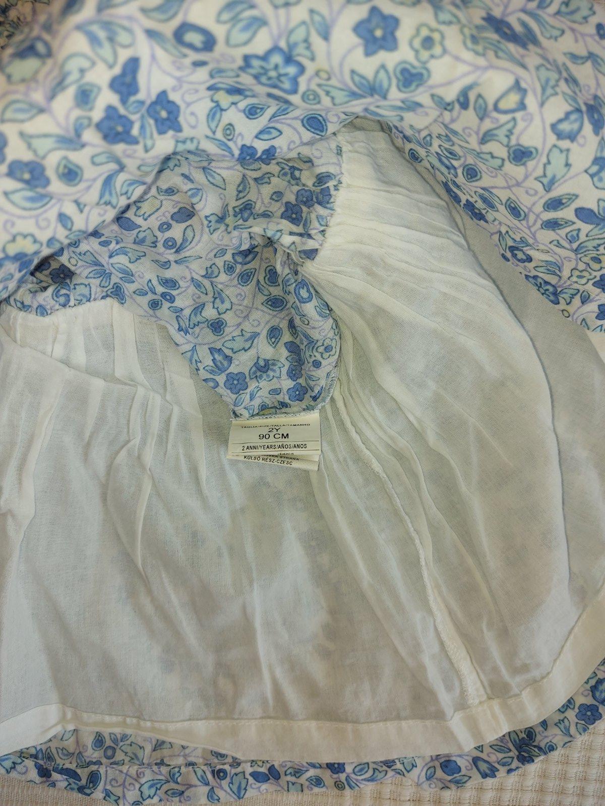 Šifonove saty s volanmi v viacerych vrstvach. Farba je tmavomodra s bielymi bodkami. Dcerine oblubene kedze su tocive (tocia sa :-) napriek tomu bez poskodeni ci opotrebeni. Mame aj ine saty v tej...