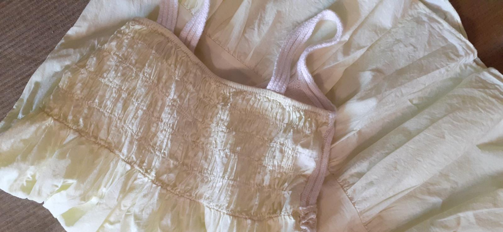 pekné letné bavl.šaty, bledozeleno-žltej farby z Talianska, na 7-8 rokov, dĺžka 76 cm, šírka 30 cm