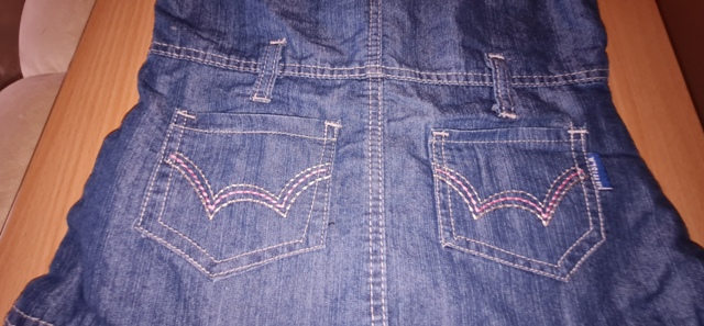 kopec vreciek, gombíková léga, dolu volánik, výšivka, vzadu vrecká, na páse pútka, perfektný stav