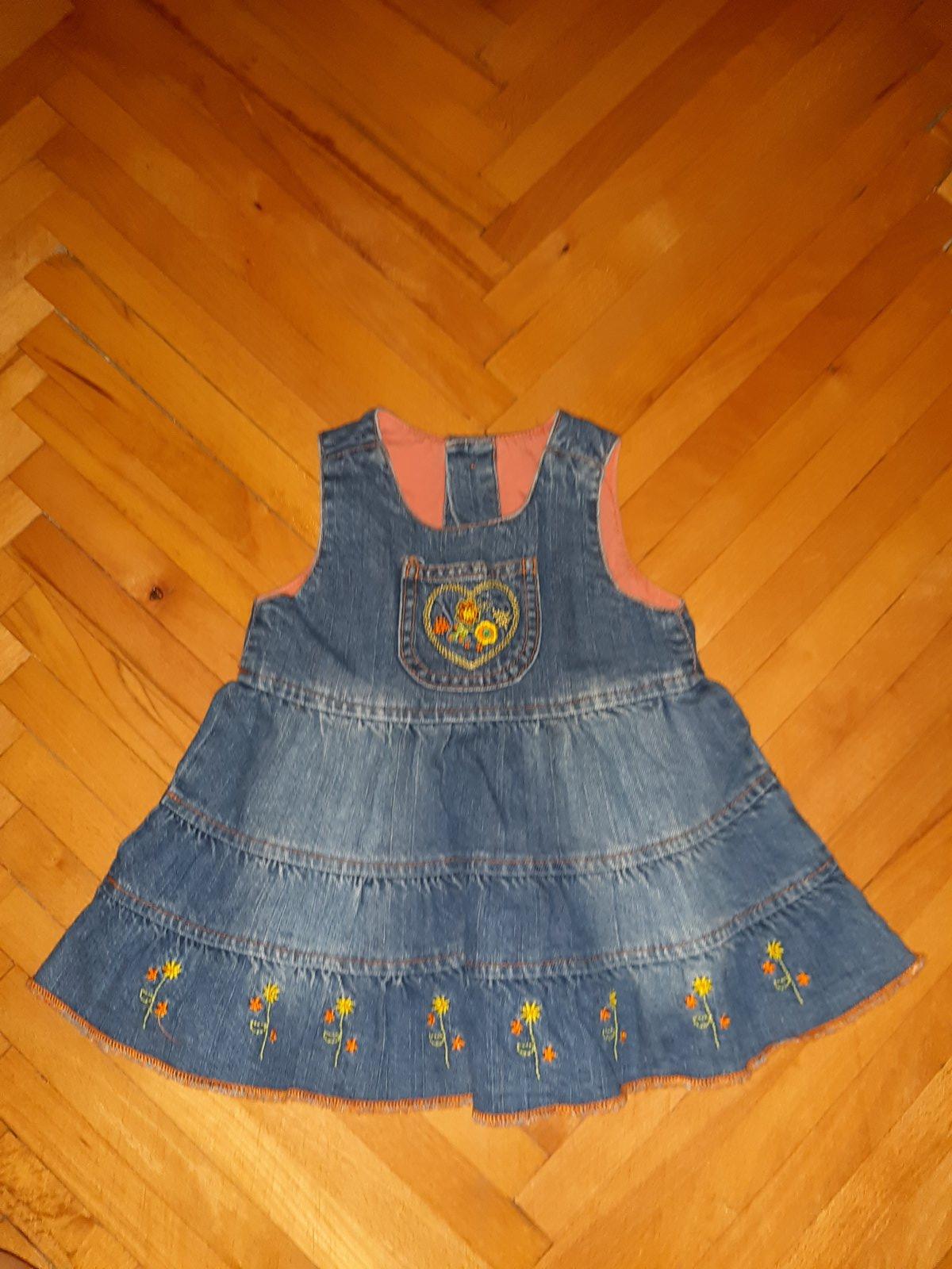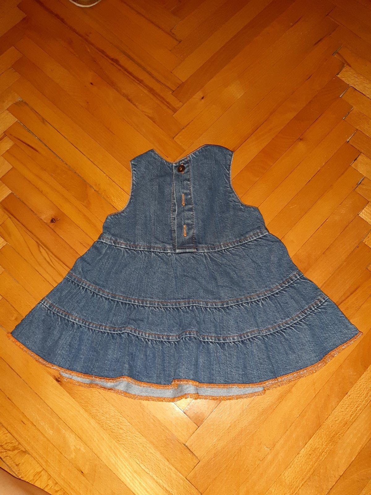 Džínsové baby šatočky málo nosené, na etikete je ešte z obchodu preškrtnutá veľkosť z 80 na 74cm.