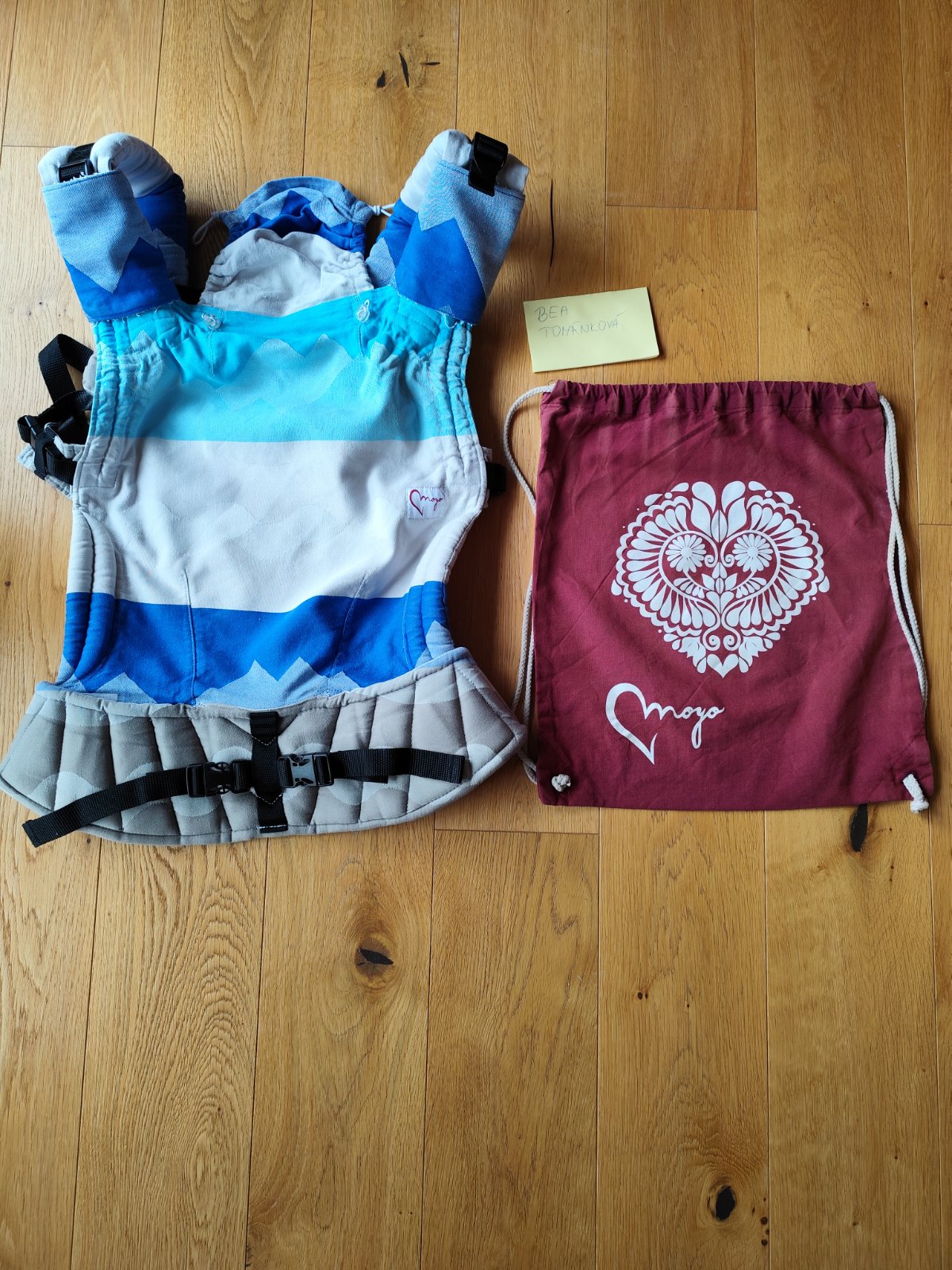 Ľanový - Moyo Classa first size - zo šatky Sestrice Geo Relief (30% ľan, 70% bavlna). Prvá majiteľka, praný len v modrom denkmite, v domácnosti je pes ale nenosil sa, nosič je opratý, ožehlený, s láskou zabalený pripravený na ďalšie nosenie.