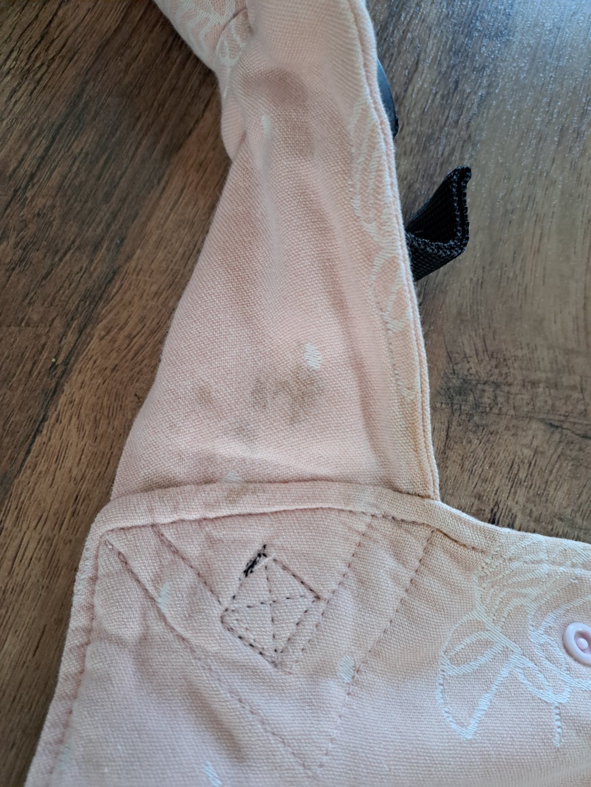 Predám používaný rucne sity nosic go bimbi, na fotkách su vidieť fľaky, k nosicu chyba naklikavacia časť na hlavičku.